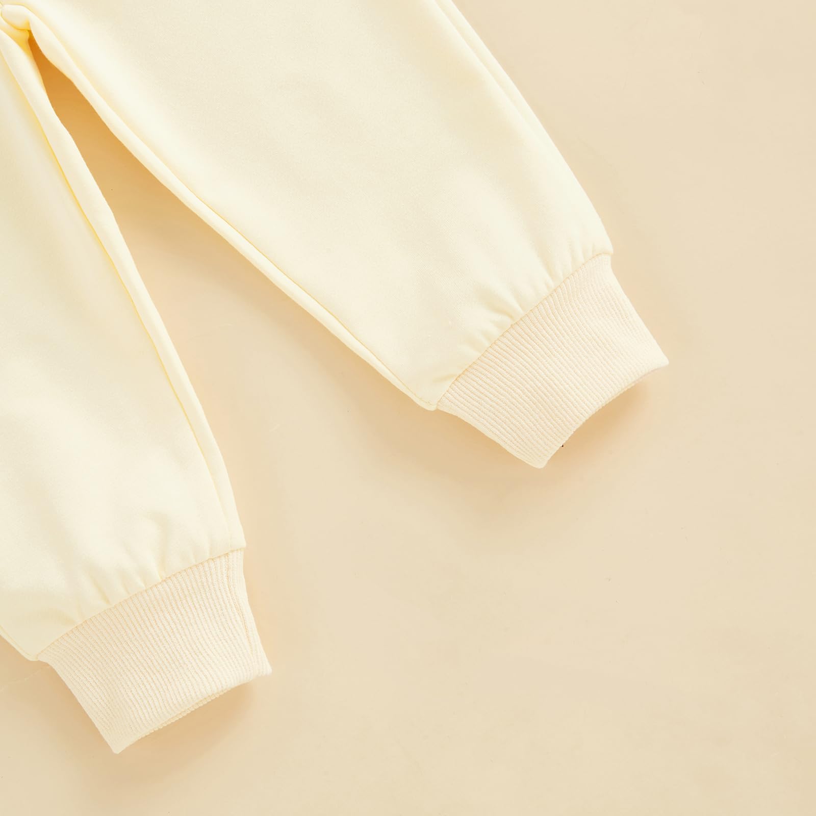 - Q: What are the key features of the sweatshirt and pants set? A: The set features a plush letter embroidery sweatshirt with long sleeves and an elastic waistband on the pants, which also include pockets.