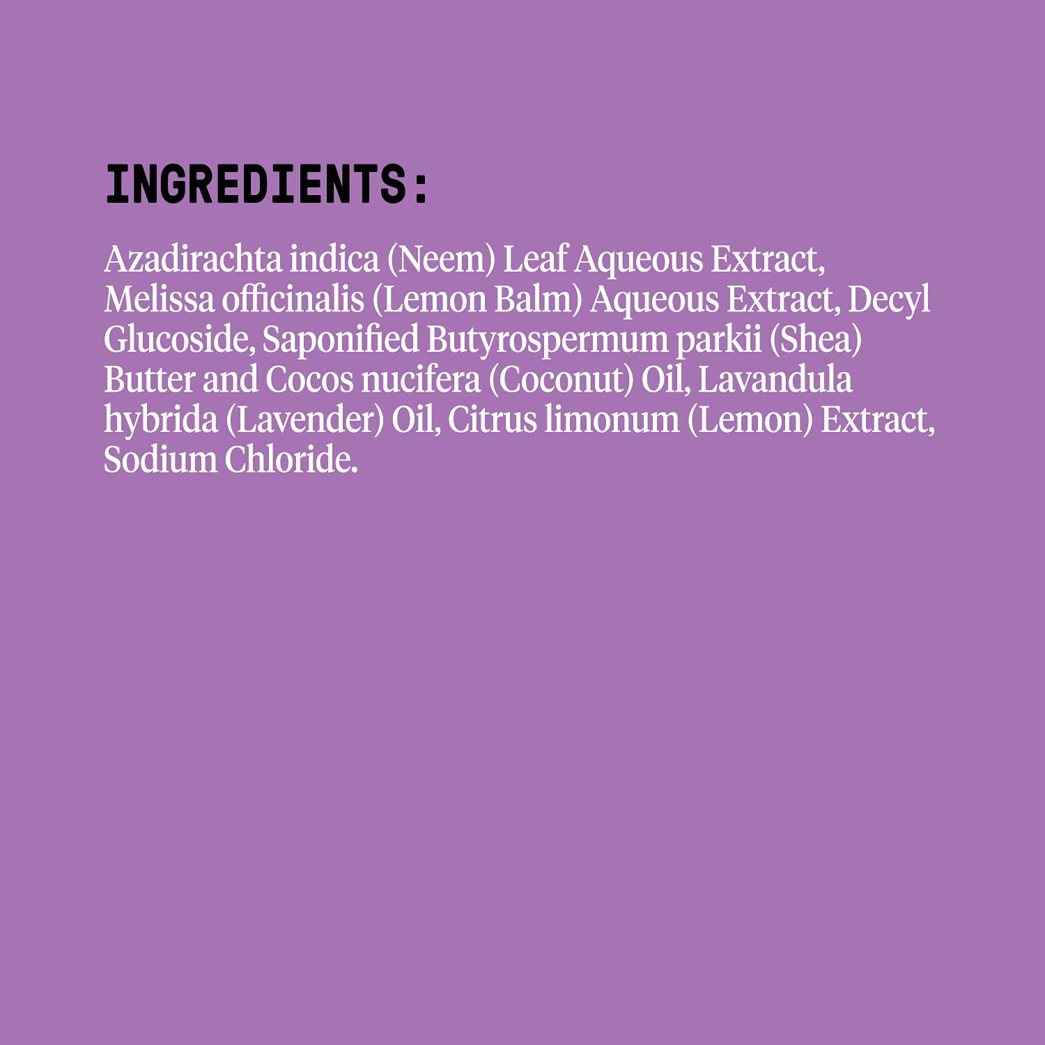 - Q: What are the main ingredients in this product? A: The primary ingredients include fair trade unrefined shea butter, virgin coconut oil, lemon balm, and lavender, all of which contribute to the product's gentle and soothing properties.