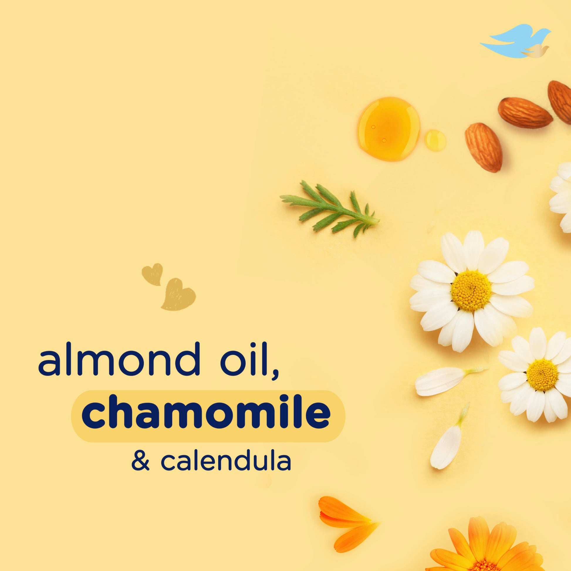 - Q: What ingredients are in Baby Dove Bubble Bath? A: Baby Dove Bubble Bath contains 100% skin-natural nutrients, almond oil, chamomile, and calendula. It is free from sulfates, dyes, parabens, and phthalates.