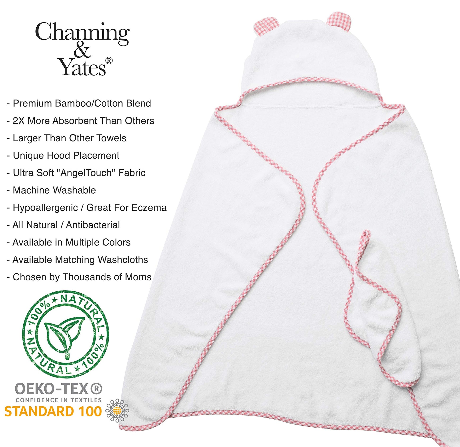 - Q: What materials are used in the Channing & Yates baby towels? A: The Channing & Yates baby towels are made from 70% organic viscose bamboo and 30% organic cotton, providing a soft and strong blend perfect for your baby's sensitive skin.