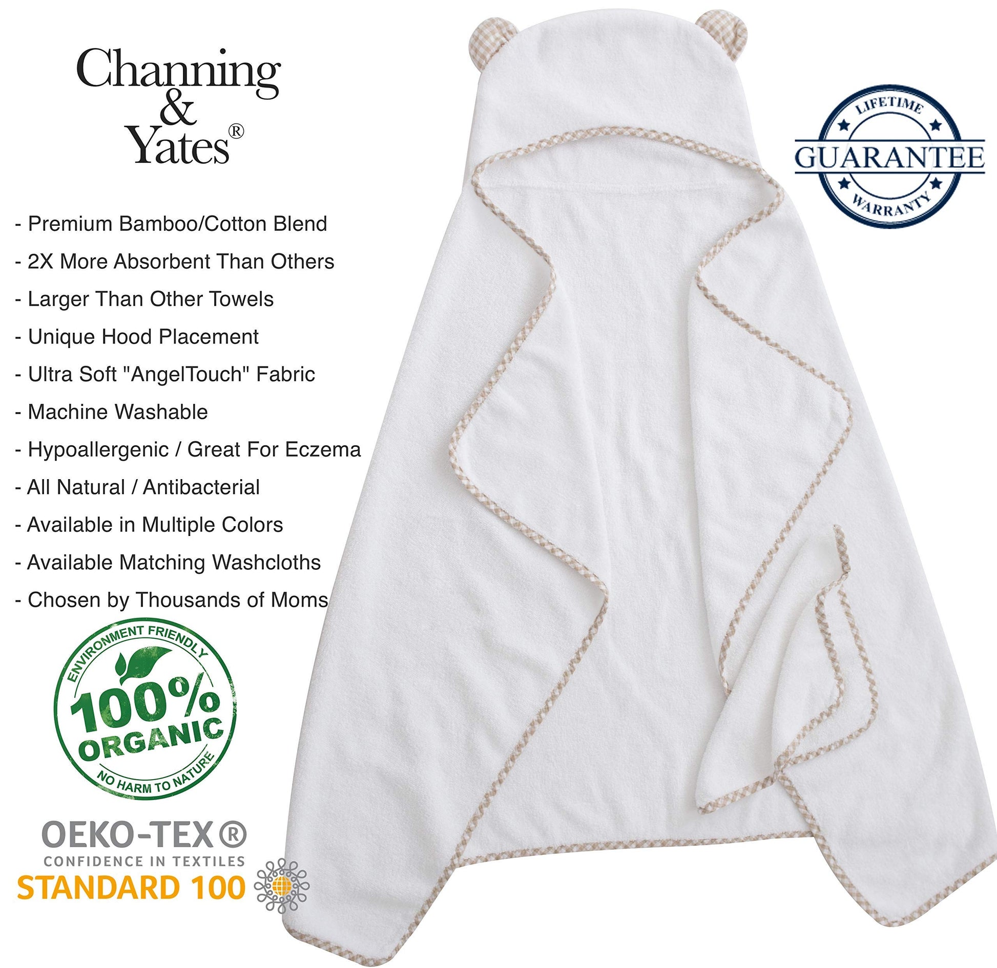 - Q: What materials are used in the Channing & Yates baby bath towel set? A: The Channing & Yates baby bath towel set is made from 70% organic bamboo viscose and 30% organic cotton, providing a soft and absorbent blend perfect for sensitive skin.