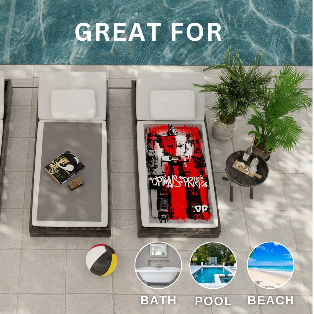 - Q: Does the towel have any special design features? A: The towel features a vibrant red color, an Autobots logo, and a silhouette of Optimus Prime, providing a bold and exciting look.