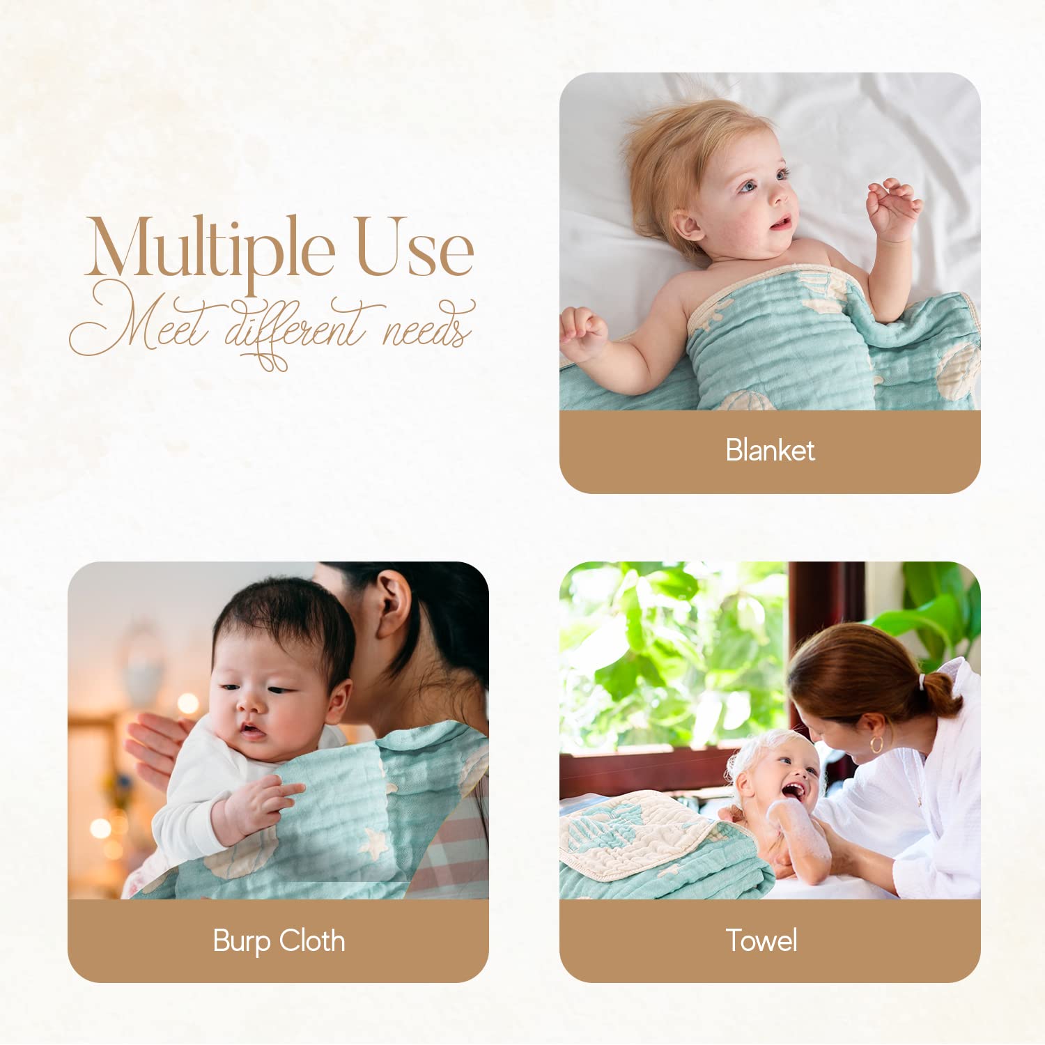 • Q: What are the multiple uses of this baby towel? A: This towel can be used as a receiving blanket, stroller cover, nursing cover, play mat, or as a bath towel.
