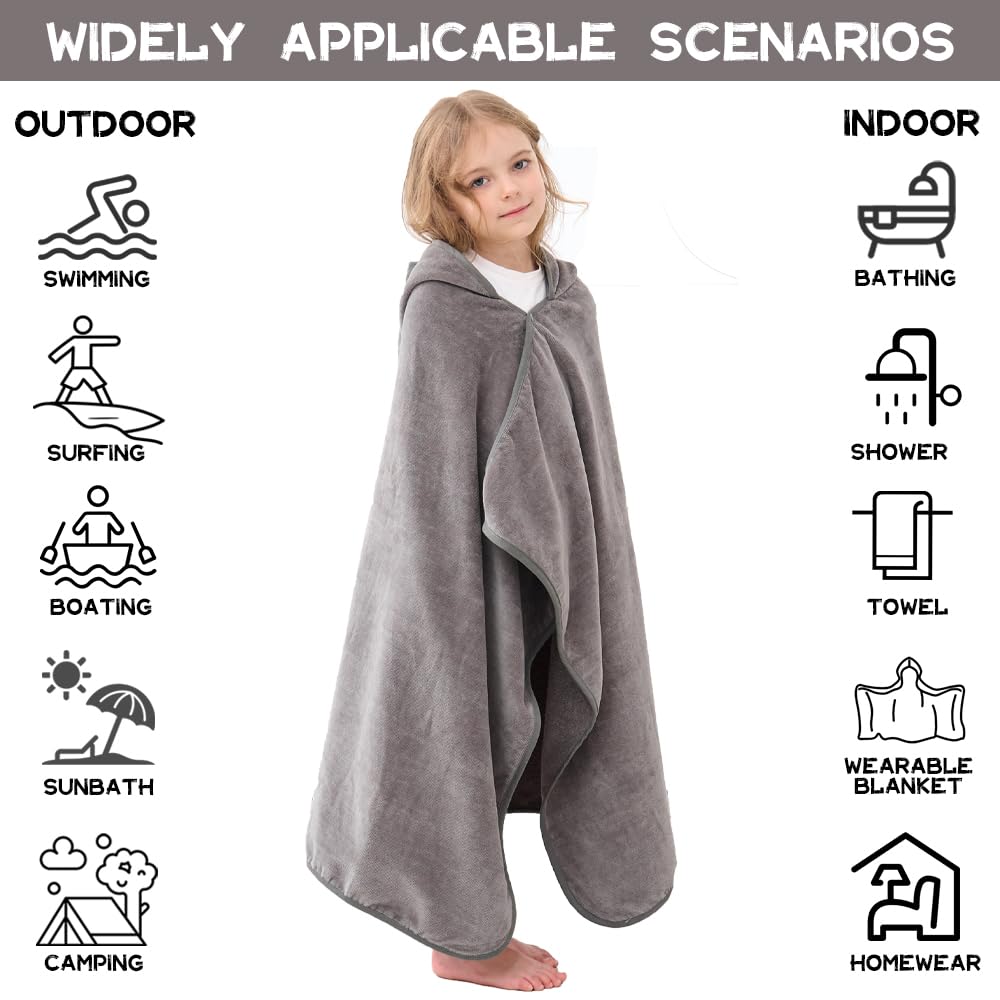 - Q: How does the hood design benefit the user? A: The spacious hood is designed to help dry hair and keep the child's head warm after a bath or swim.