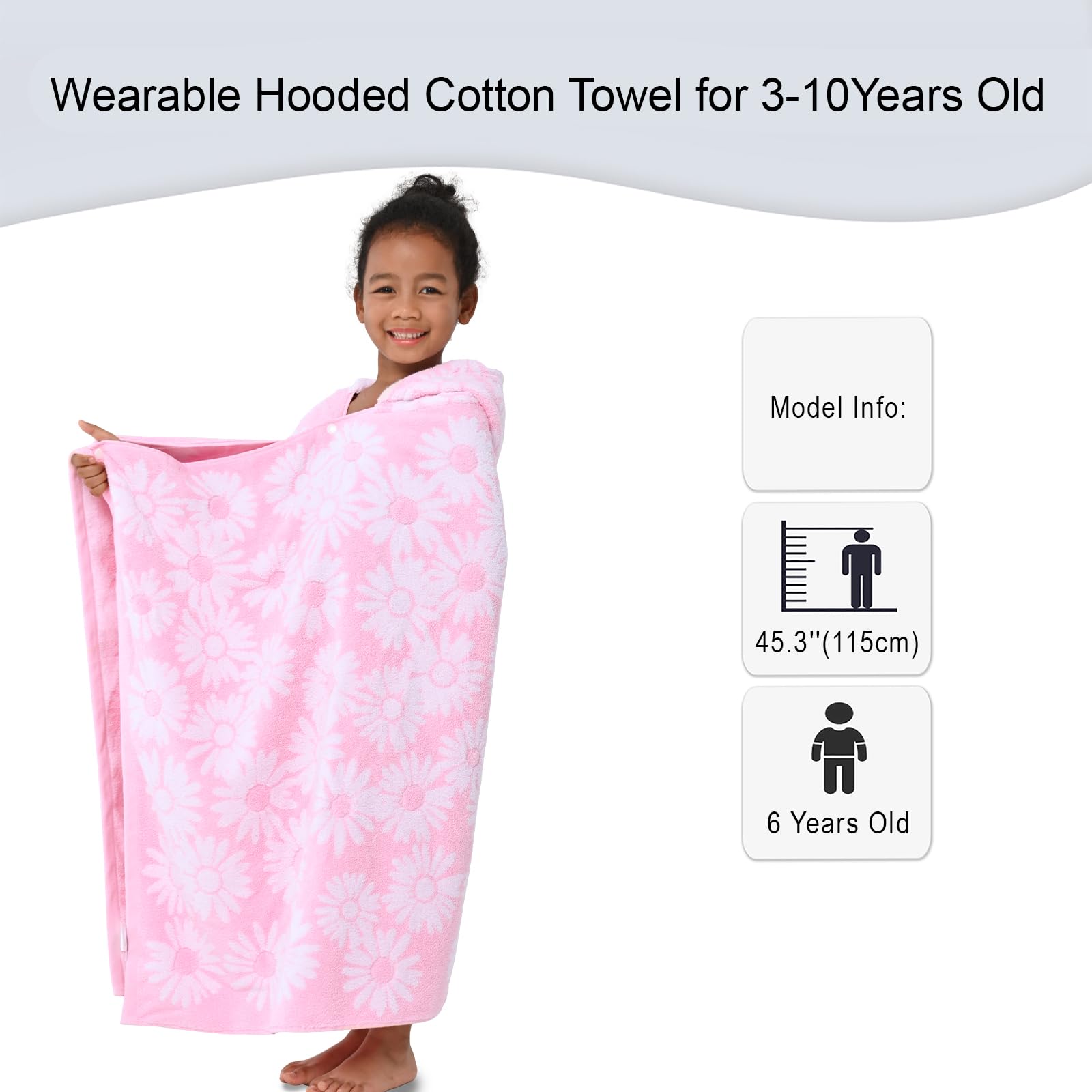 • Q: What design options are available for this towel? A: This towel comes in a charming pink color with a white daisies theme, adding a stylish touch that kids will love.