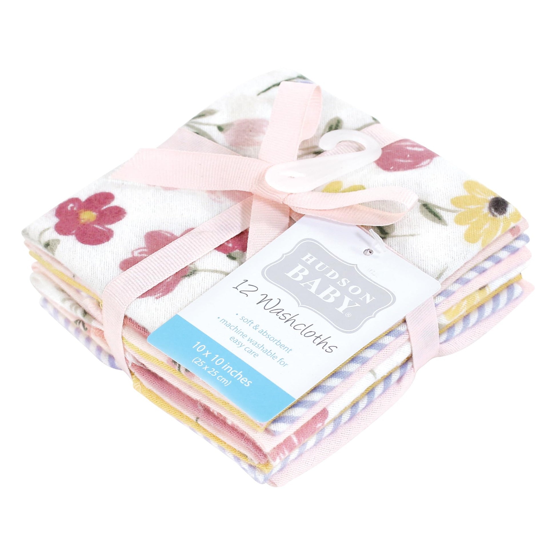 Hudson Baby Unisex Baby Flannel Cotton Washcloths, Soft Painted Floral 12 Pack, One Size