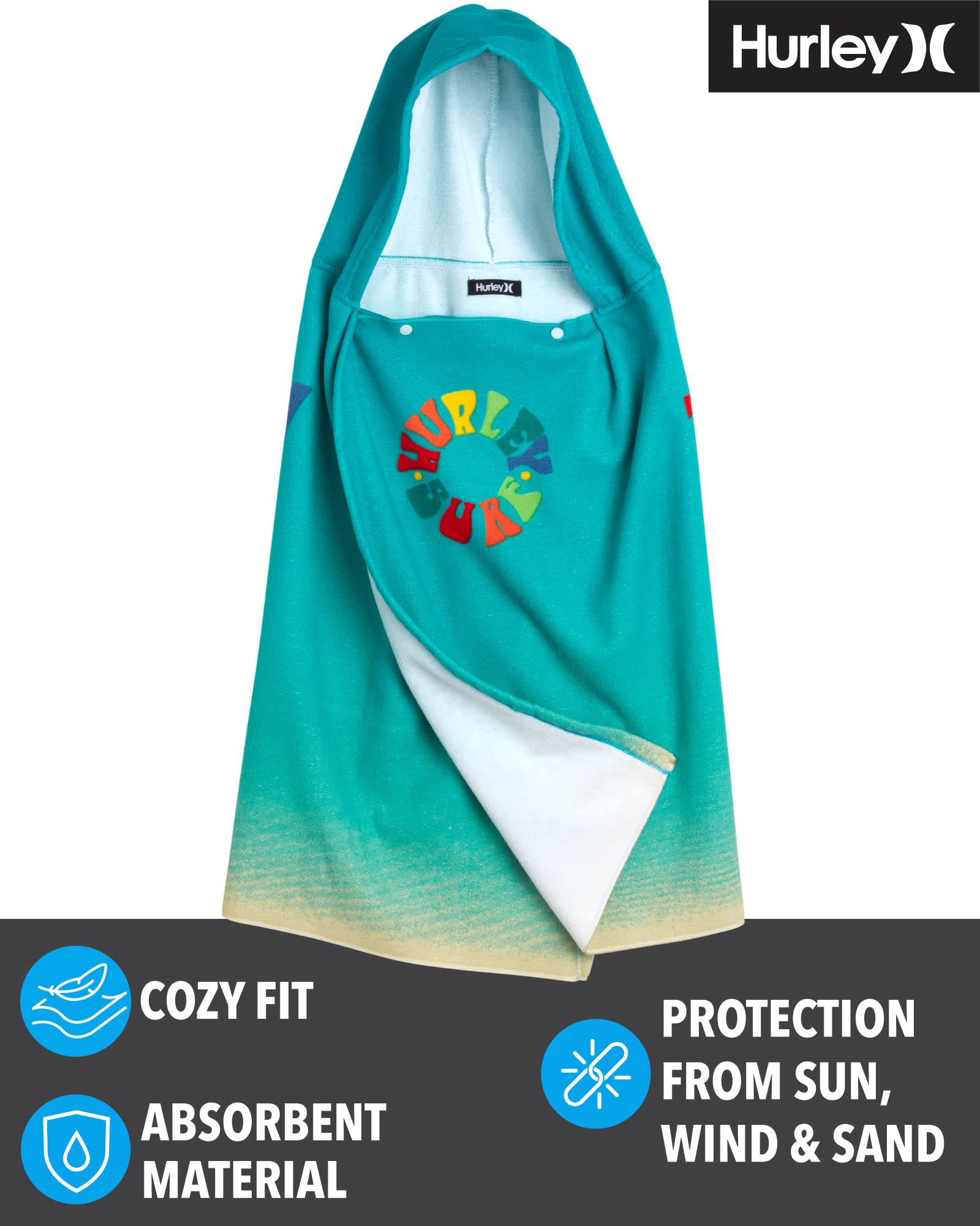 - Q: Can this towel be used for purposes other than at the beach? A: Yes, the Hurley Kids' Hooded Beach Towel is versatile and can be used at the beach, pool, or bath, functioning as a poncho, bathrobe, and changing robe.