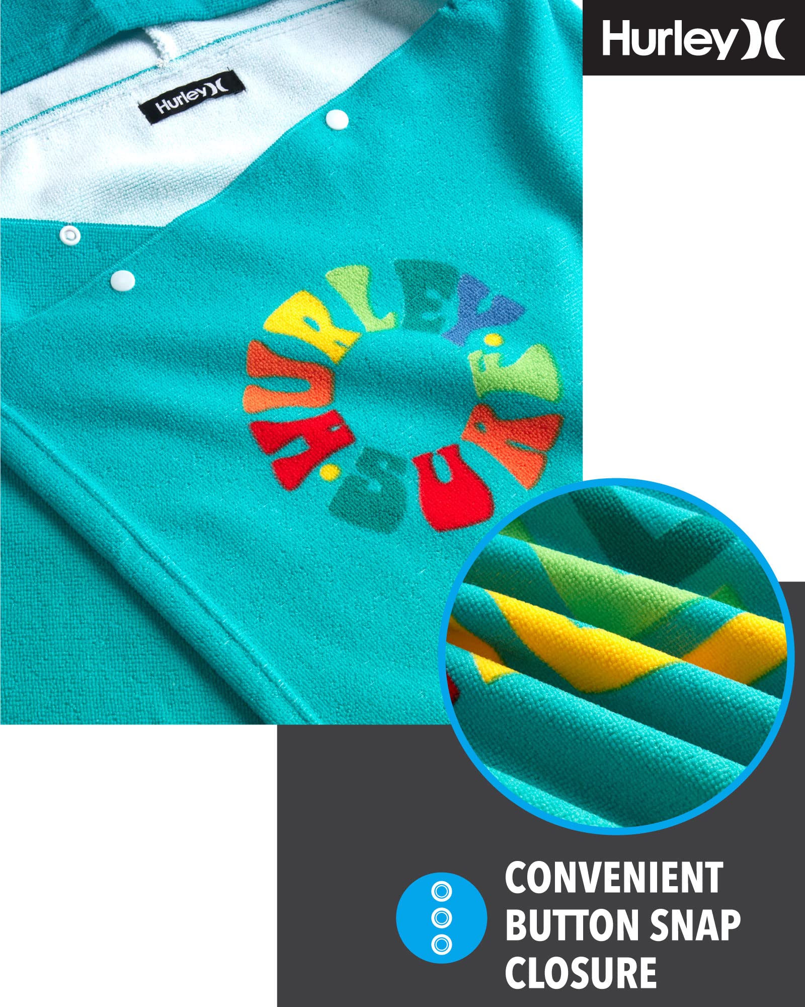- Q: Is the design of the towel appealing to kids? A: The towel features a playful Hurley design with beach motifs, making it visually appealing to kids who love the beach and ocean.