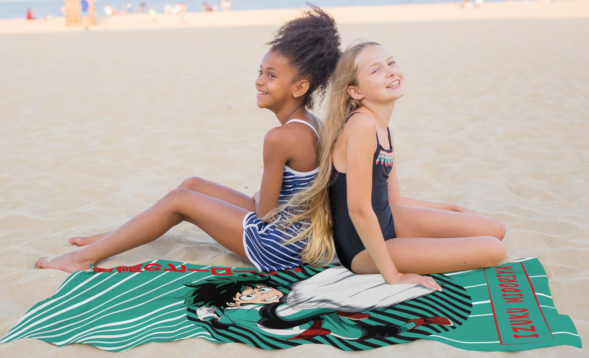 - Q: What are the dimensions of the My Hero Academia Beach Towel? A: The towel measures 28 inches by 58 inches, providing ample coverage for kids.