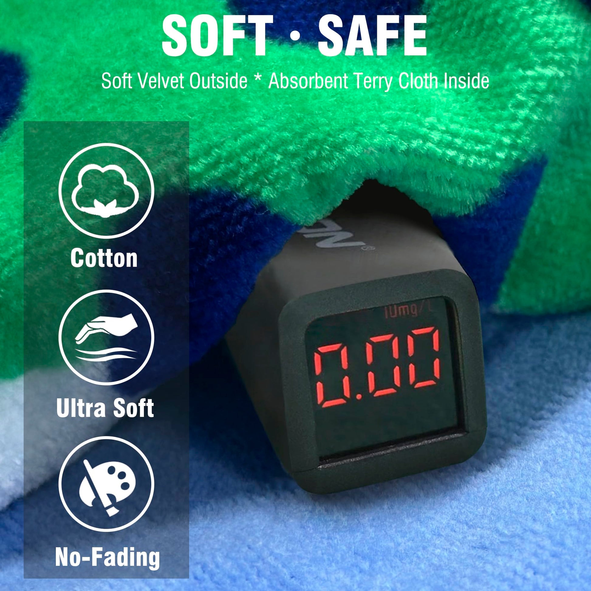 - Q: Is the towel absorbent? A: Yes, the towel is made from terry cloth fabric that absorbs moisture faster than microfiber, keeping kids comfortable.