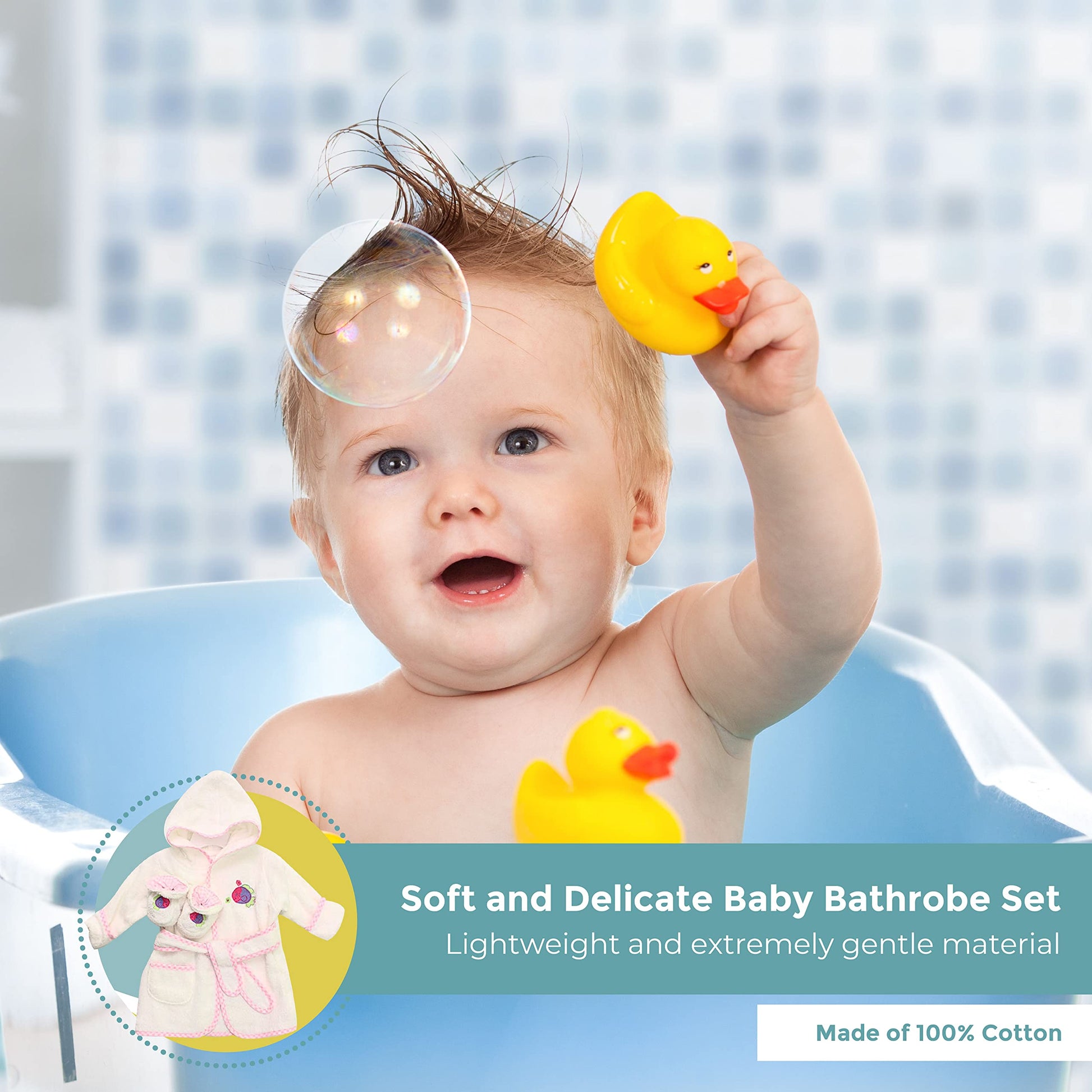 - Q: Is the bathrobe hooded? A: Yes, the bathrobe features a hood to keep your baby warm, especially after bath time.