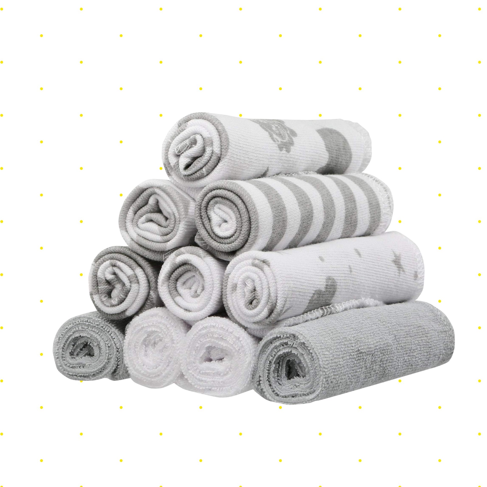 - Q: How many washcloths are included in the set? A: The set includes a total of 10 washcloths.