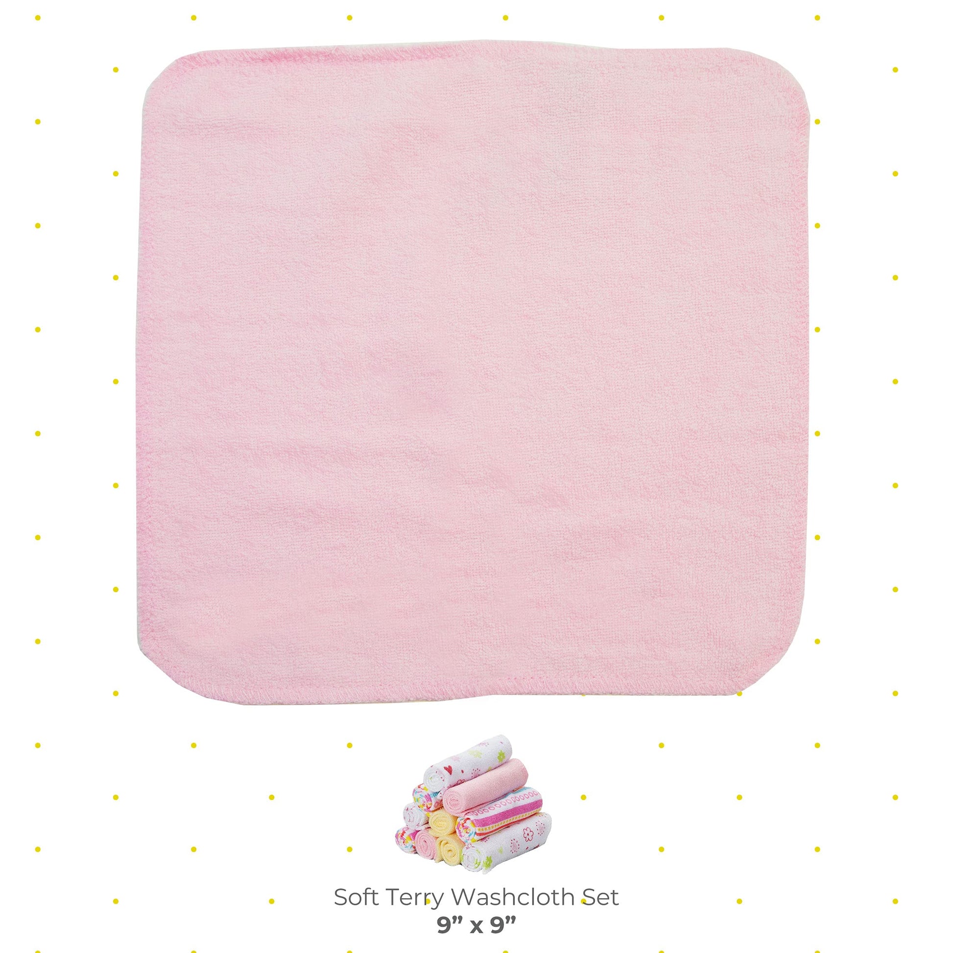 - Q: What design do the washcloths feature? A: The washcloths feature a fun pink striped pattern, which adds a playful touch to your baby's bath time essentials.