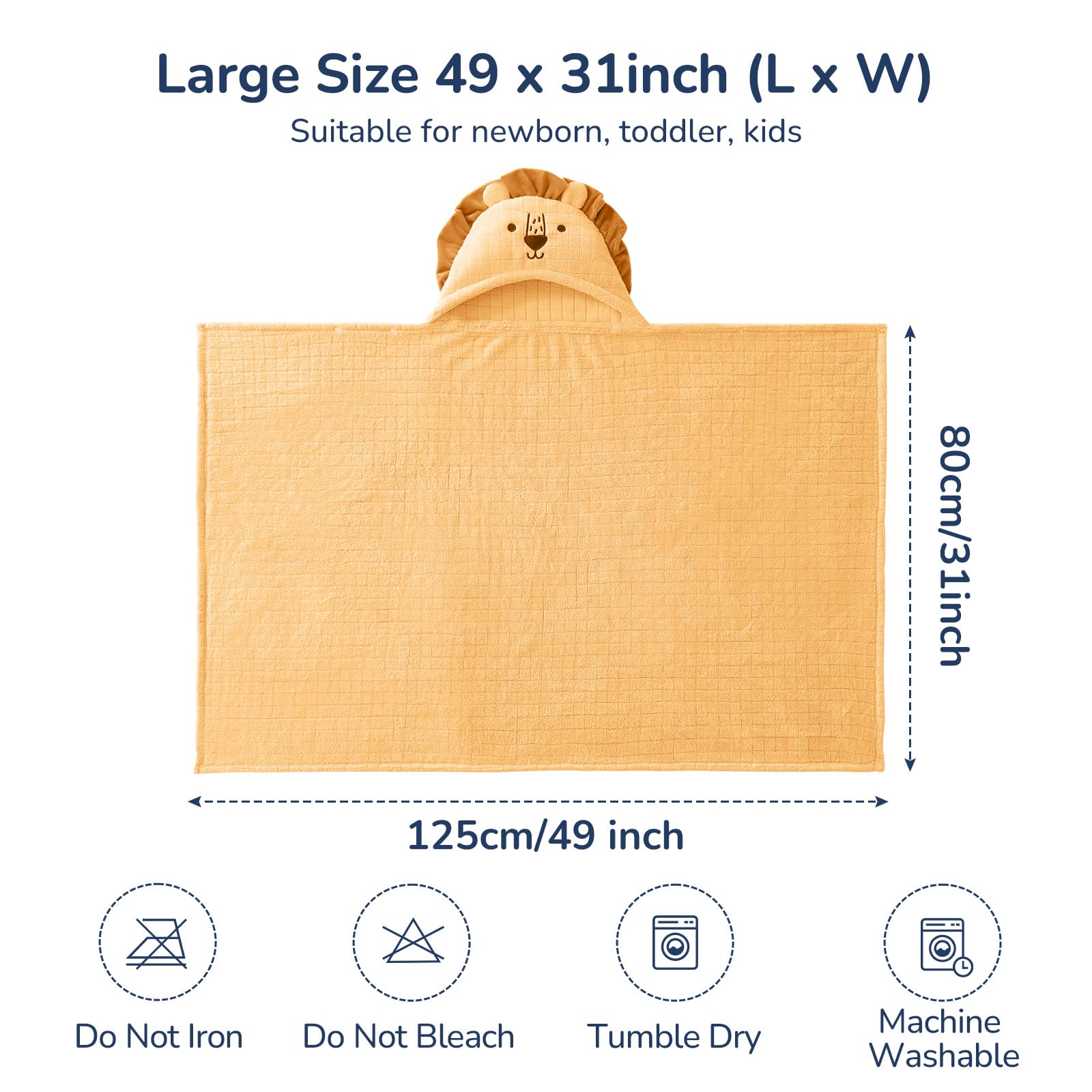 - Q: What are the dimensions of the Usbettas Hooded Towel? A: The Usbettas Hooded Towel measures 49 inches by 31 inches, making it suitable for newborns, toddlers, and kids.
