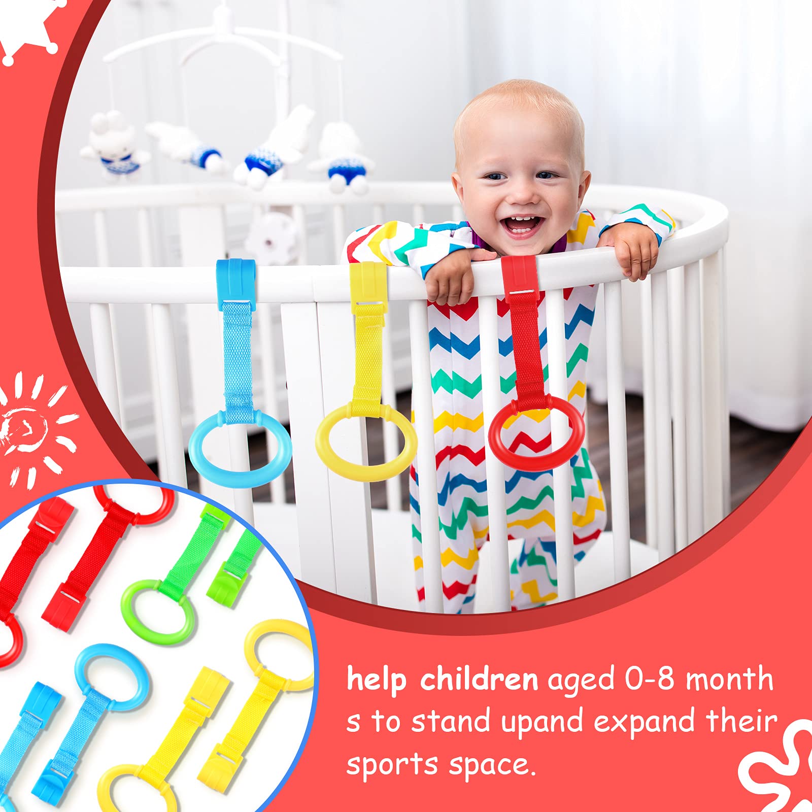 8 Pieces Baby Pull Up Rings For Playpen Baby Crib Pull Ring Baby Walking Exercises Assistant Rings Bed Bed Stand Up Ring Hanging