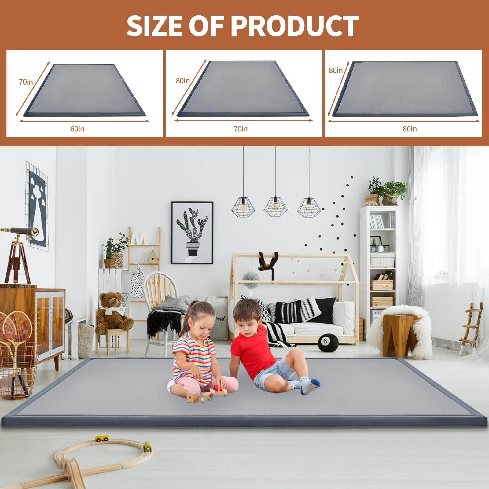 THICK COMFORTABLE PLAYMAT - Our play mat features super soft coral velvet fabric with high-density memory foam padding, offering approximately 1.4 inches of thickness. The nursery baby rug is breathable, colorfast, and gentle on baby's skin, providing a cushioned surface that helps reduce the impact of falls during playtime | DESIGNED FOR PLAY AND EXPLORATION - Perfect for early childhood training, our baby floor mats create a safe and soft environment for kids to play, crawl, and explore. These thick mats protect against bumps and falls, allowing children to develop confidently | VERSATILE AND PORTABLE - Our tummy time mat serves as a travel play mat, tent mat, or indoor area rug. Whether indoors or outdoors, its durability and versatility make it ideal for various settings | IDEAL GIFT FOR YOUNG ONES - Our baby crawling mat is a perfect gift for birthdays, holidays, or baby showers. It's a practical addition to any home with infants or toddlers, offering ease of storage and portability for on-the-go play | EFFORTLESS CARE INSTRUCTIONS - Upon opening, the kids' play mat may have creases and appear compressed.Don't worry - this is normal. We recommend steaming or ironing it to restore its shape. After steaming or ironing, the Relax Mat will be ready for use. If it seems slightly smaller at first, rest assured it will expand to its original size