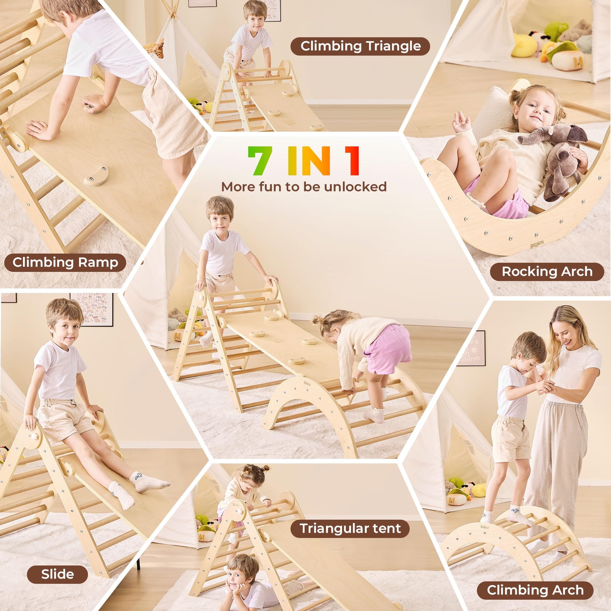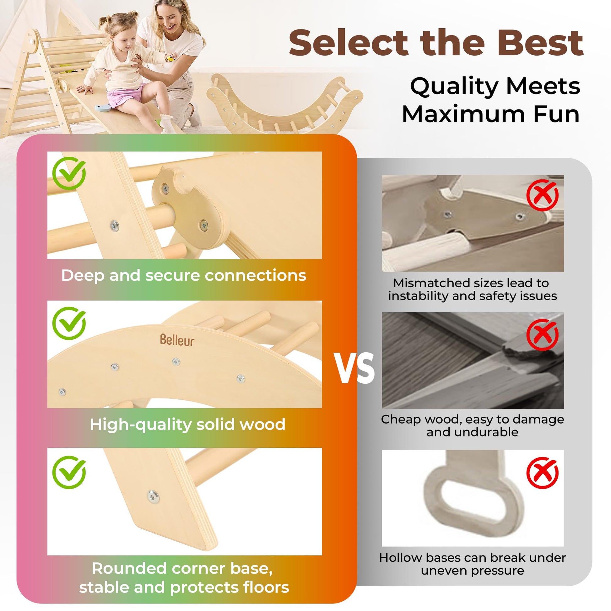 - Q: Is the Pikler Triangle Set safe for toddlers? A: Yes, the set meets ASTM and CPSIA safety standards, featuring smooth edges and rounded corners to minimize injury risks.