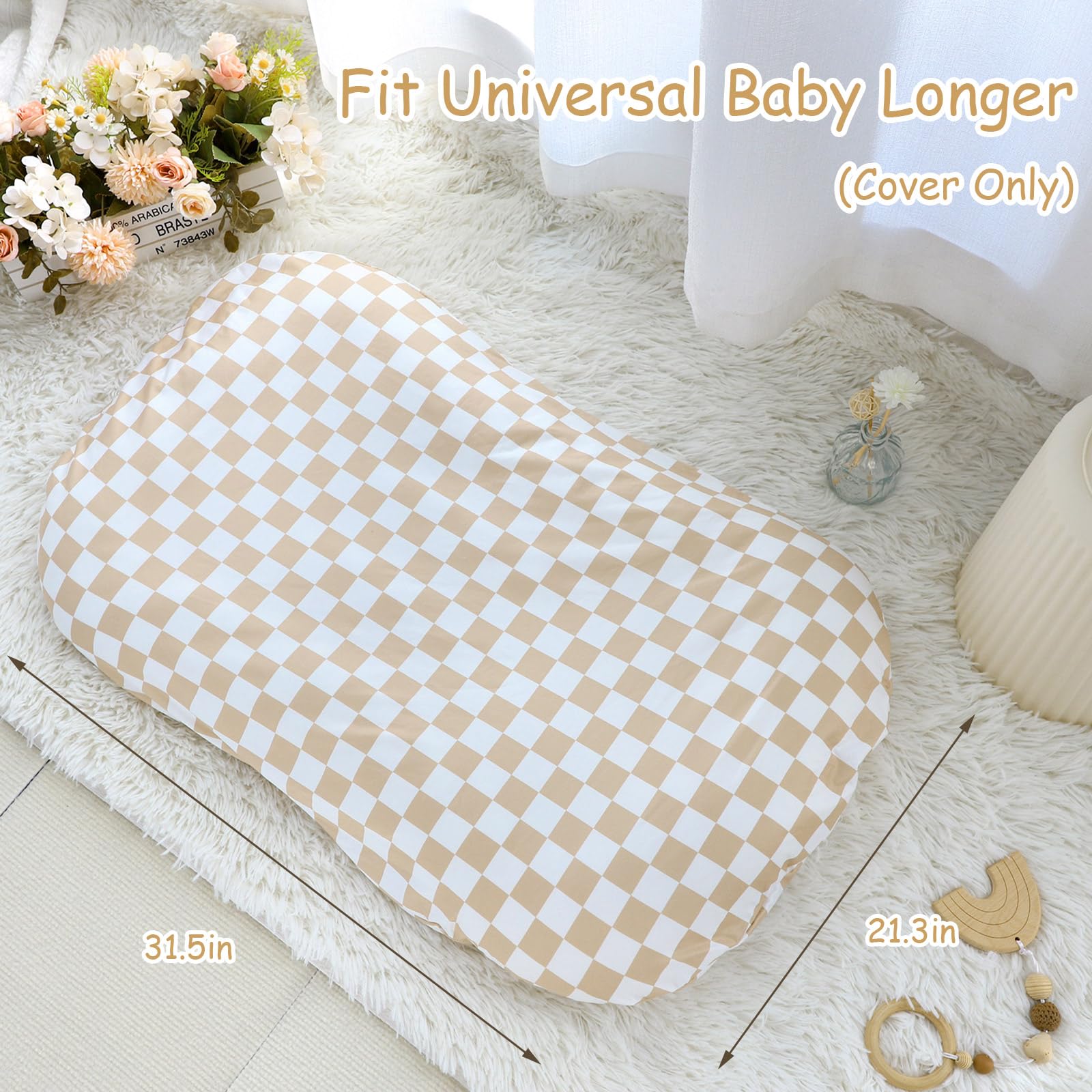 Dilimi Baby Lounger Cover For Boys And Girls, Removable Cover Ultra Soft Comfortable Lounger Slipcover, Light Brown Checkerboard