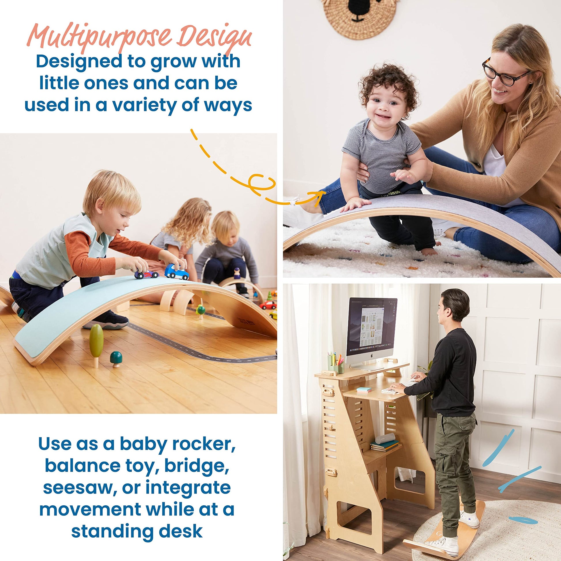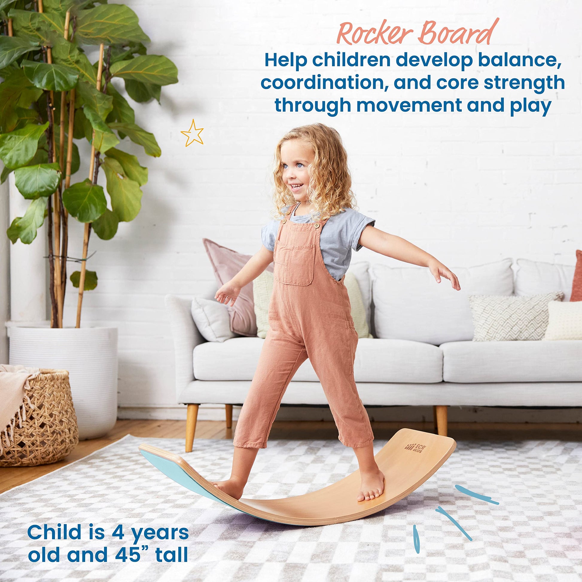 - Q: How does the balance board promote physical development? A: The balance board encourages physical activity by developing balance, coordination, and core strength through various play activities.