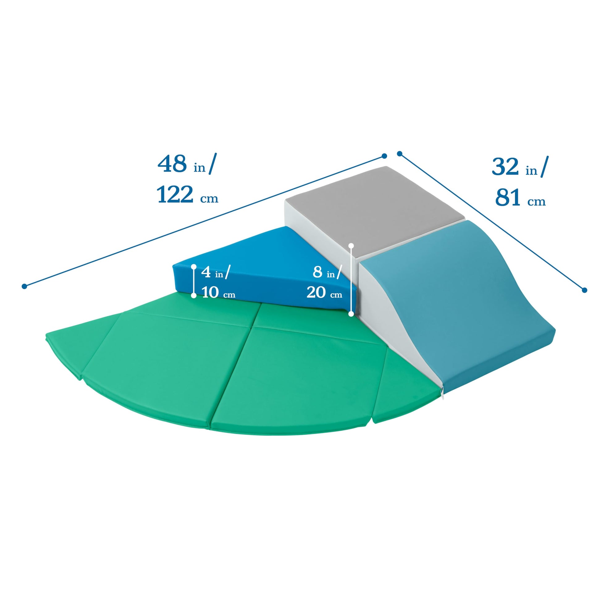 - Q: What are the dimensions of the assembled playset? A: When fully assembled, the ECR4Kids SoftZone playset measures 48 inches wide, 32 inches deep, and 8 inches high.