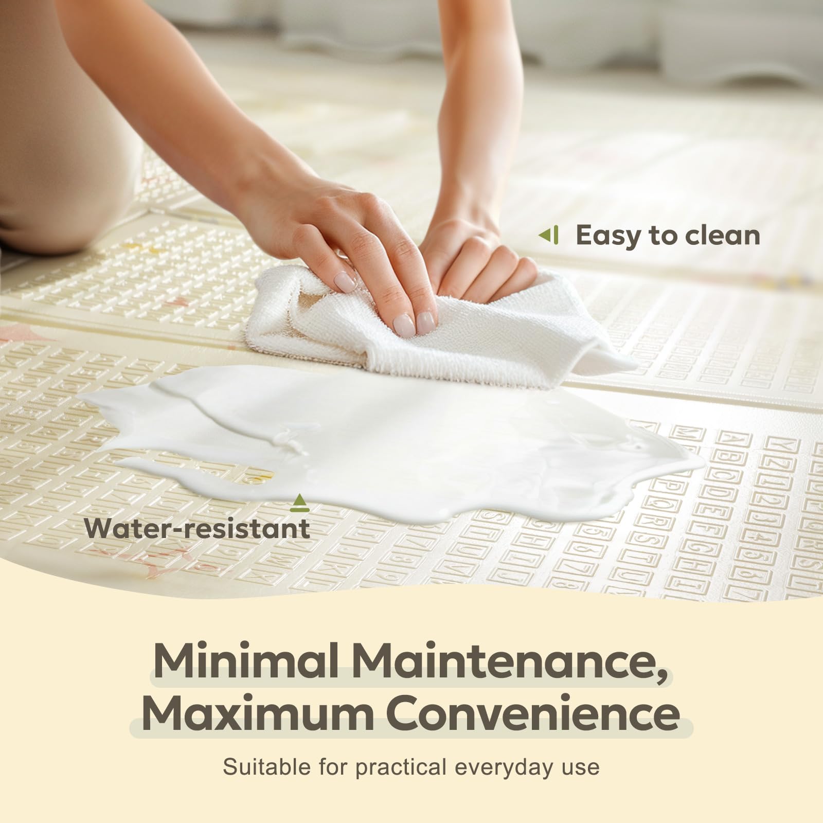 - Q: Can the play mat be easily cleaned? A: Absolutely! The play mat is waterproof, allowing for easy clean-ups with just a damp cloth or towel.