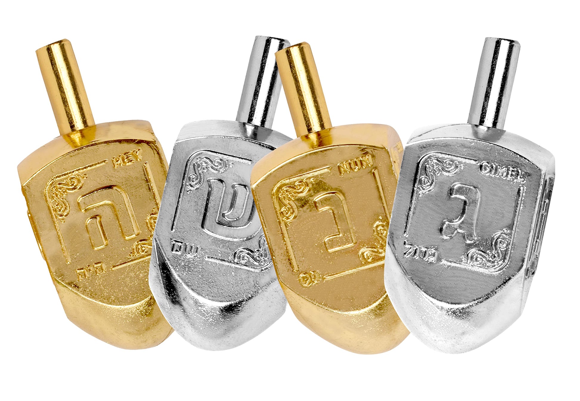 - Q: How many dreidels are included in the pack? A: Each pack contains 10 metallic gold and silver dreidels.