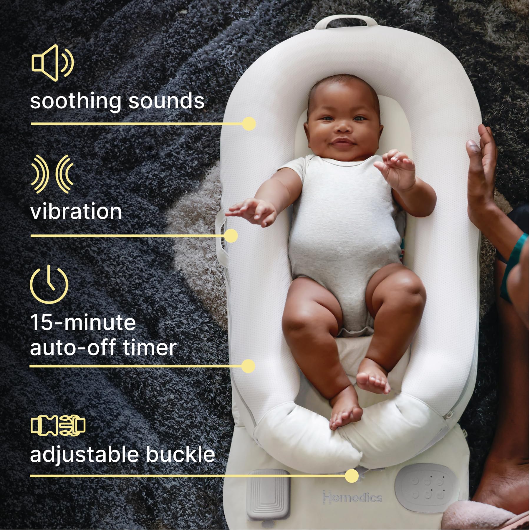 - Q: How does the cushion help calm my baby? A: The cushion calms babies by gently cocooning them and providing a snuggling sensation, along with sound and vibration options that mimic the comforting environment of the womb.