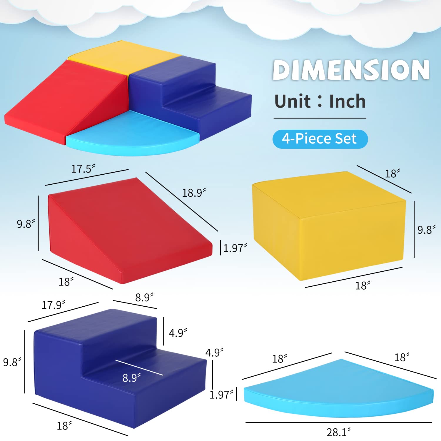 - Q: What is the size of the individual foam blocks? A: The set includes various shapes such as rectangular, triangular, and half-moon blocks, allowing for versatile play while being lightweight and easy to move.