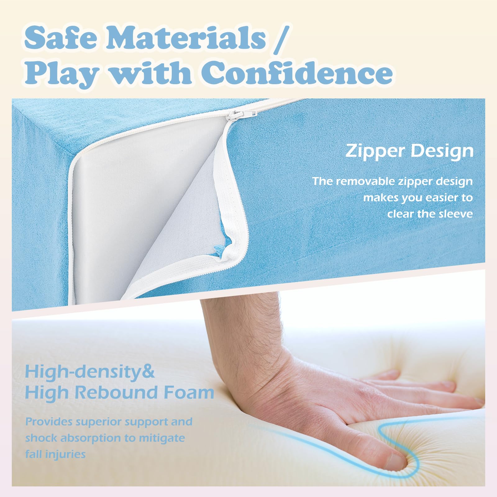 - Q: What materials are used in the climbing blocks? A: The climbing blocks are crafted from soft, high-quality, durable fabric filled with premium high-density foam, providing both comfort and support during play.