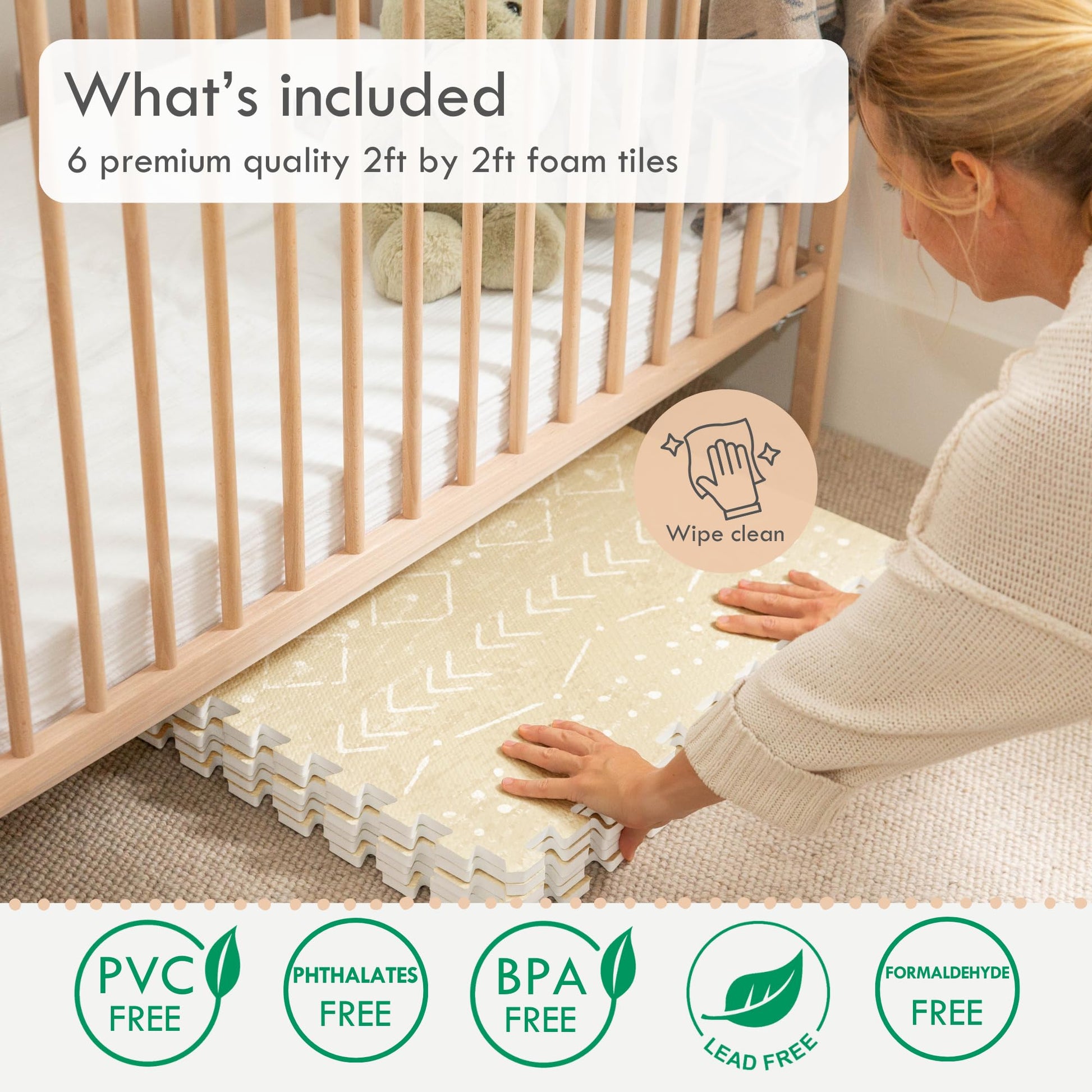- Q: What makes this play mat different from other foam mats? A: This play mat addresses common concerns by using premium materials and eliminating small pieces to enhance safety.