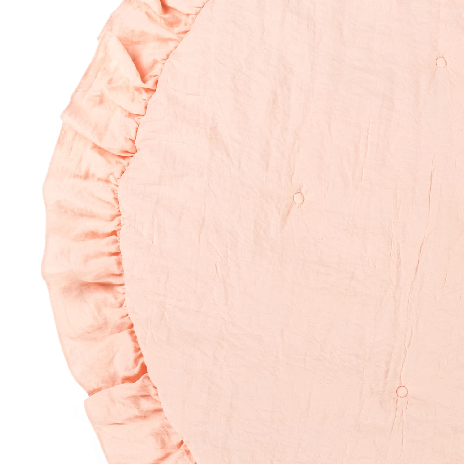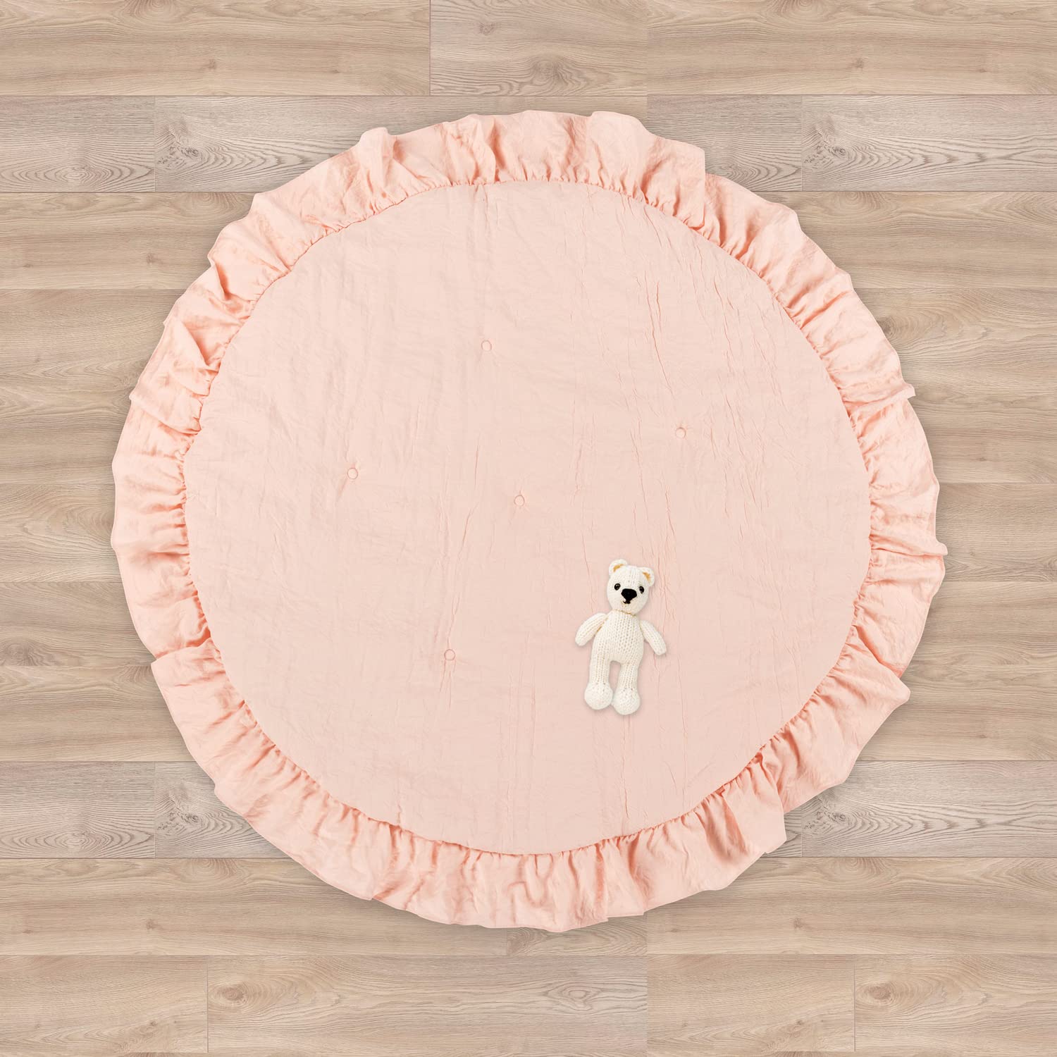 - Q: What is the design style of the play mat? A: The play mat features a charming ruffle detail that complements stylish nursery decor.
