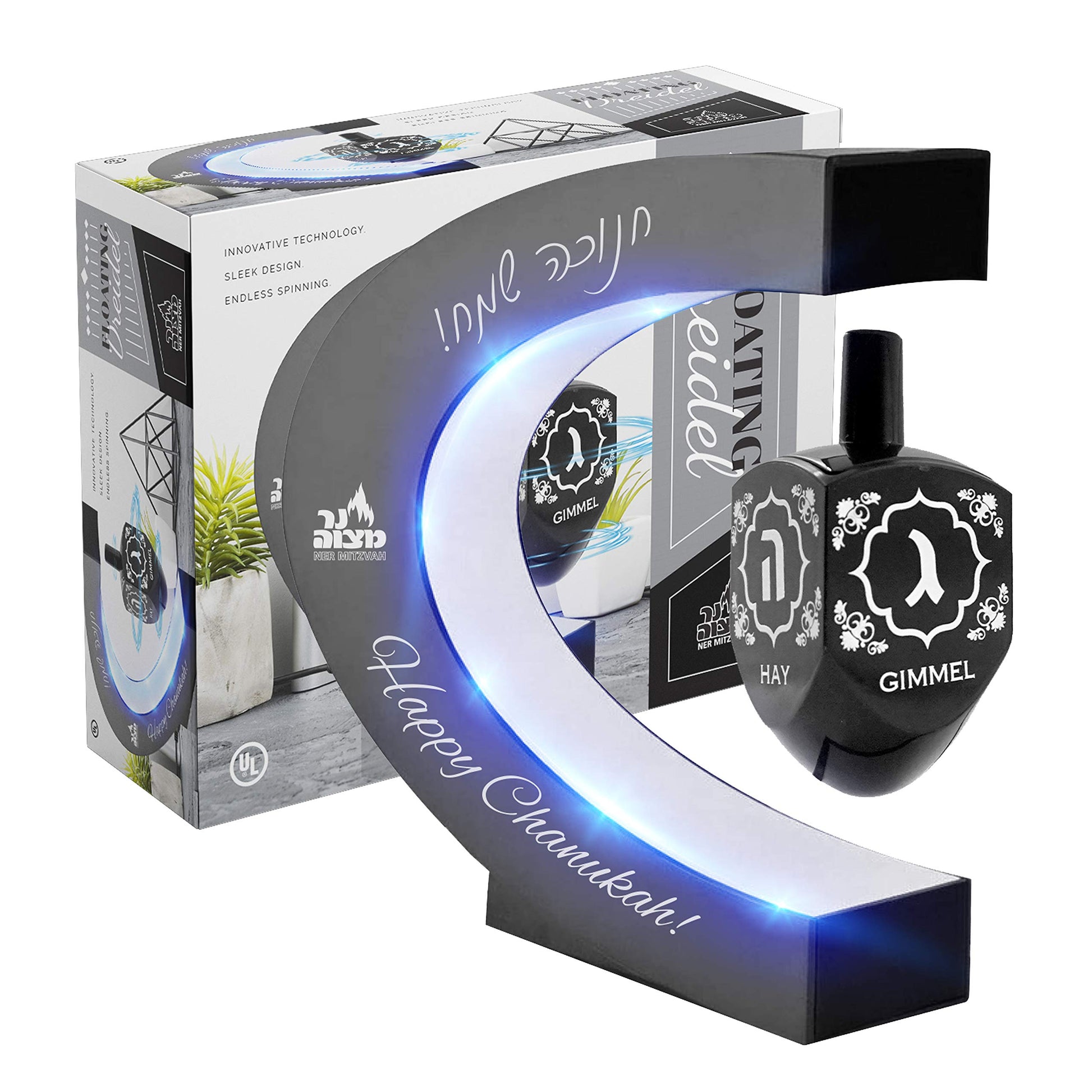 - Q: How does the Ner Mitzvah Floating Dreidel work? A: The Ner Mitzvah Floating Dreidel uses magnetic technology to suspend the dreidel mid-air. After plugging in the adapter, you place the dreidel close to the base to find the suspension point, allowing it to spin endlessly with a light tap.