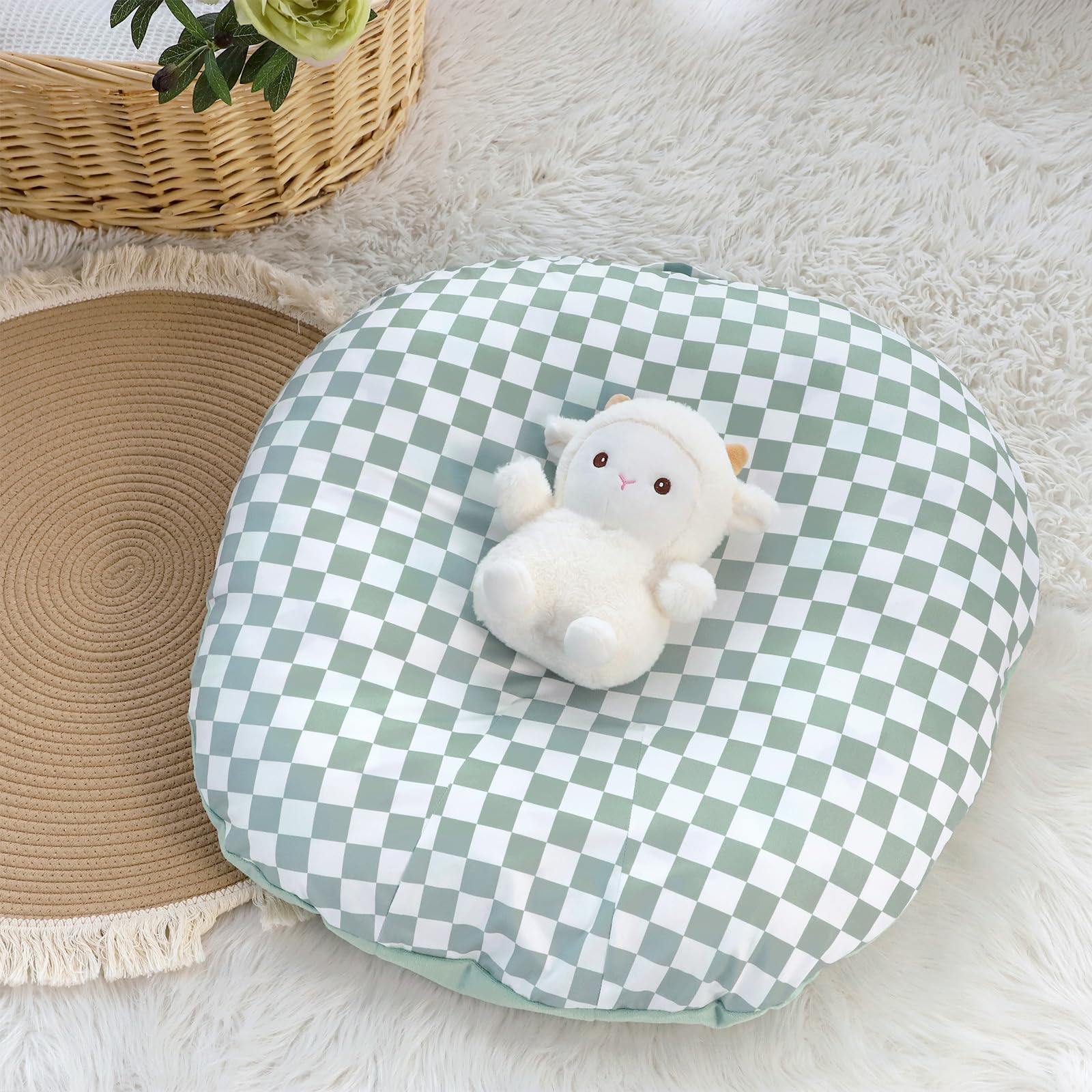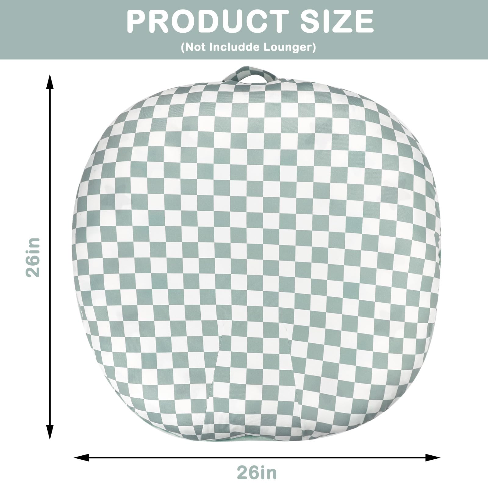 - Q: What design features does the cover have? A: The Newborn Lounger Cover has a cute checkered pattern on one side and a solid color on the other, making it stylish and versatile for different nursery themes.
