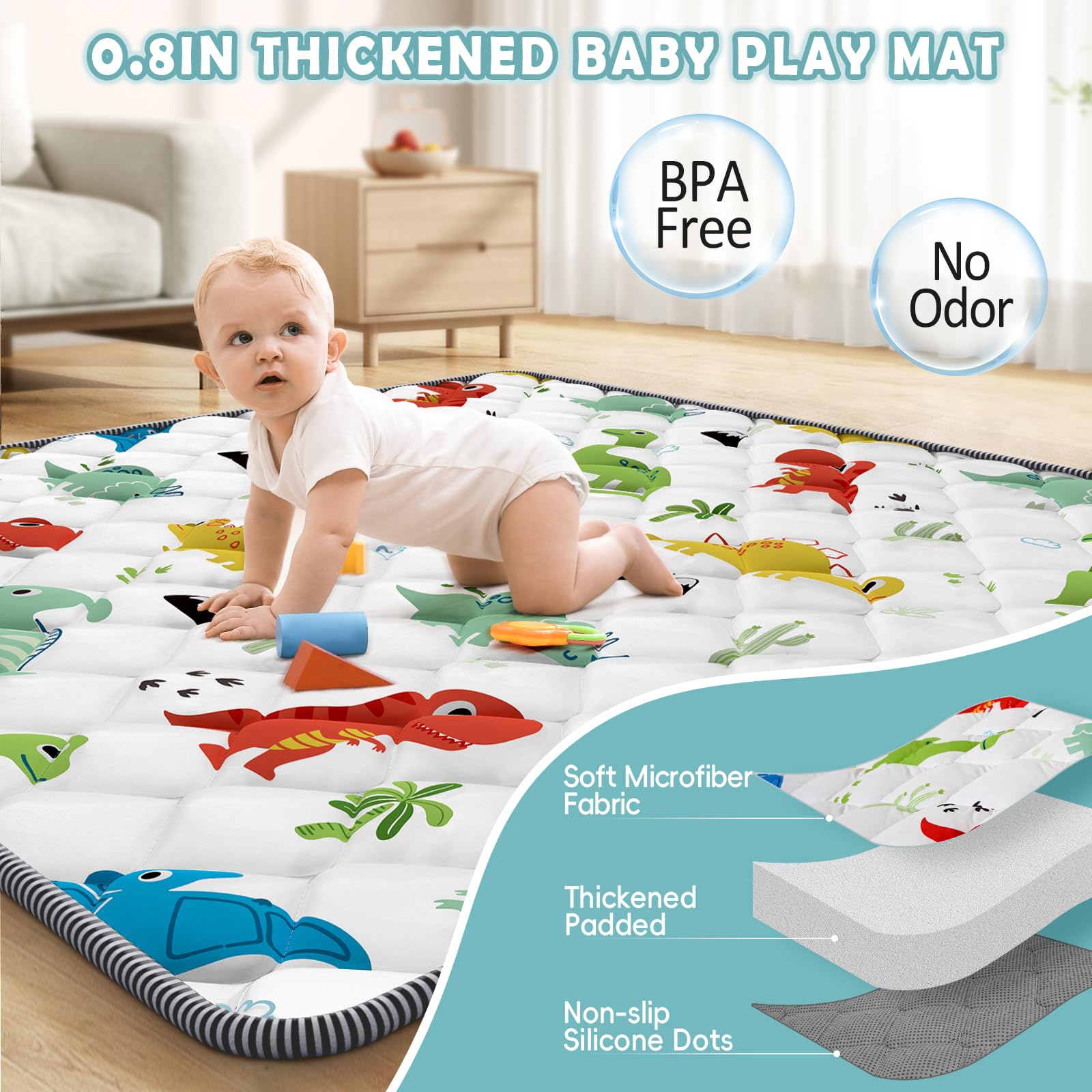 • Q: How thick is the padding on the play mat? A: The play mat features a thickness of 0.8 inches, providing a soft and cushioned surface for your child.