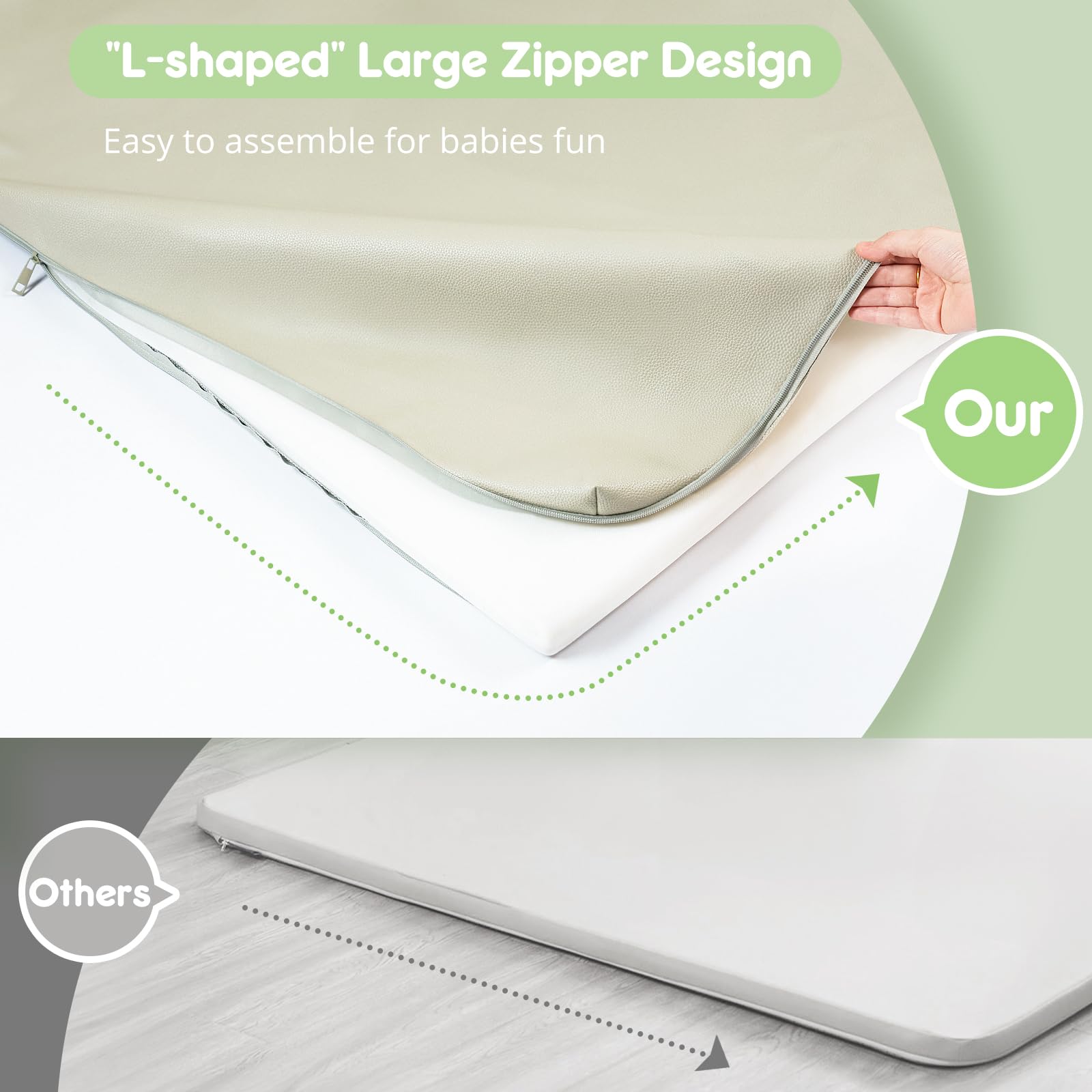 - Q: Does the mat have any special features? A: Yes, the play mat has an L-shaped zipper design for easy installation and removal, along with buckle straps for secure storage.