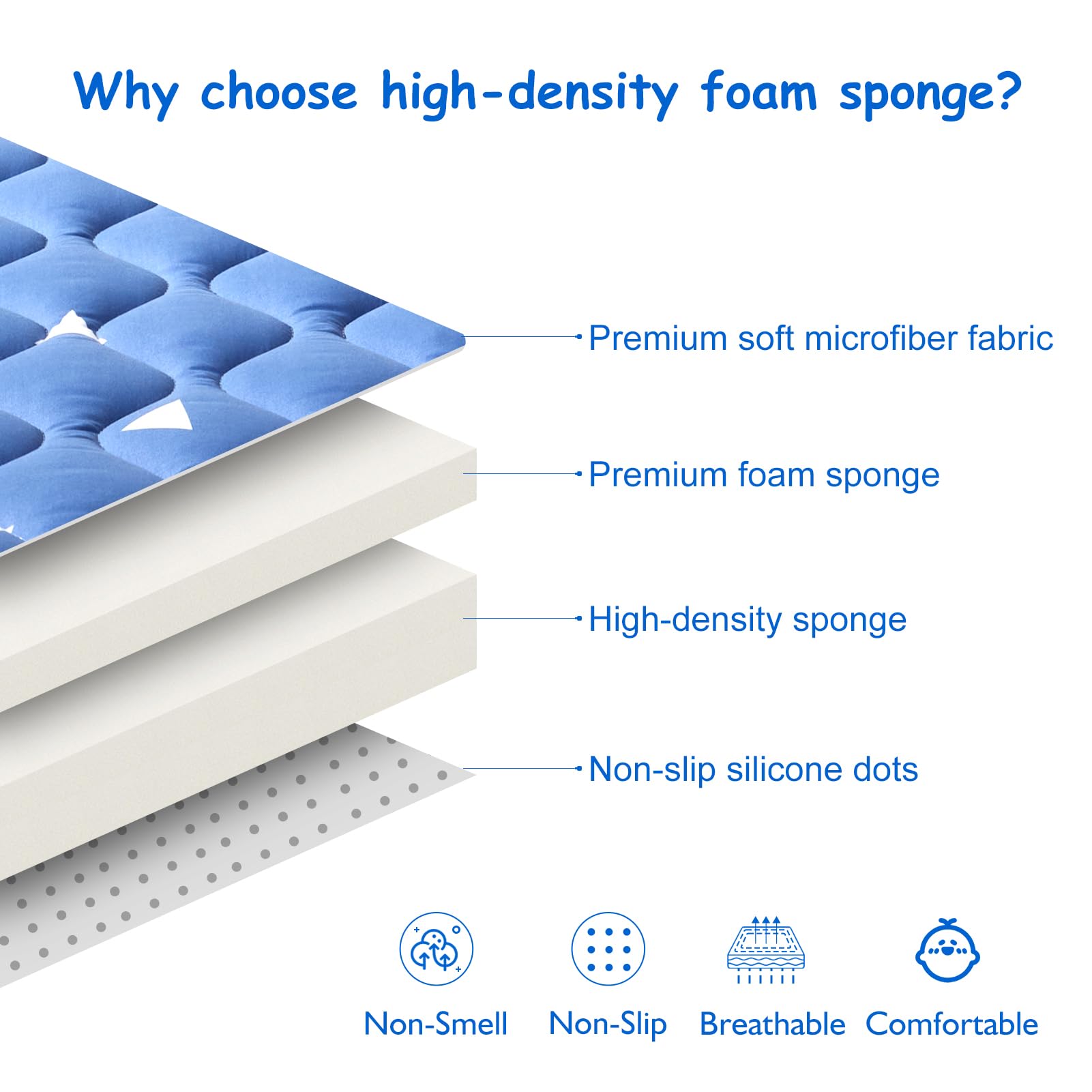 • Q: Is the baby play mat safe for infants and toddlers? A: Yes, the mat features a non-slip design on the bottom, ensuring stability and safety for infants and toddlers during playtime.