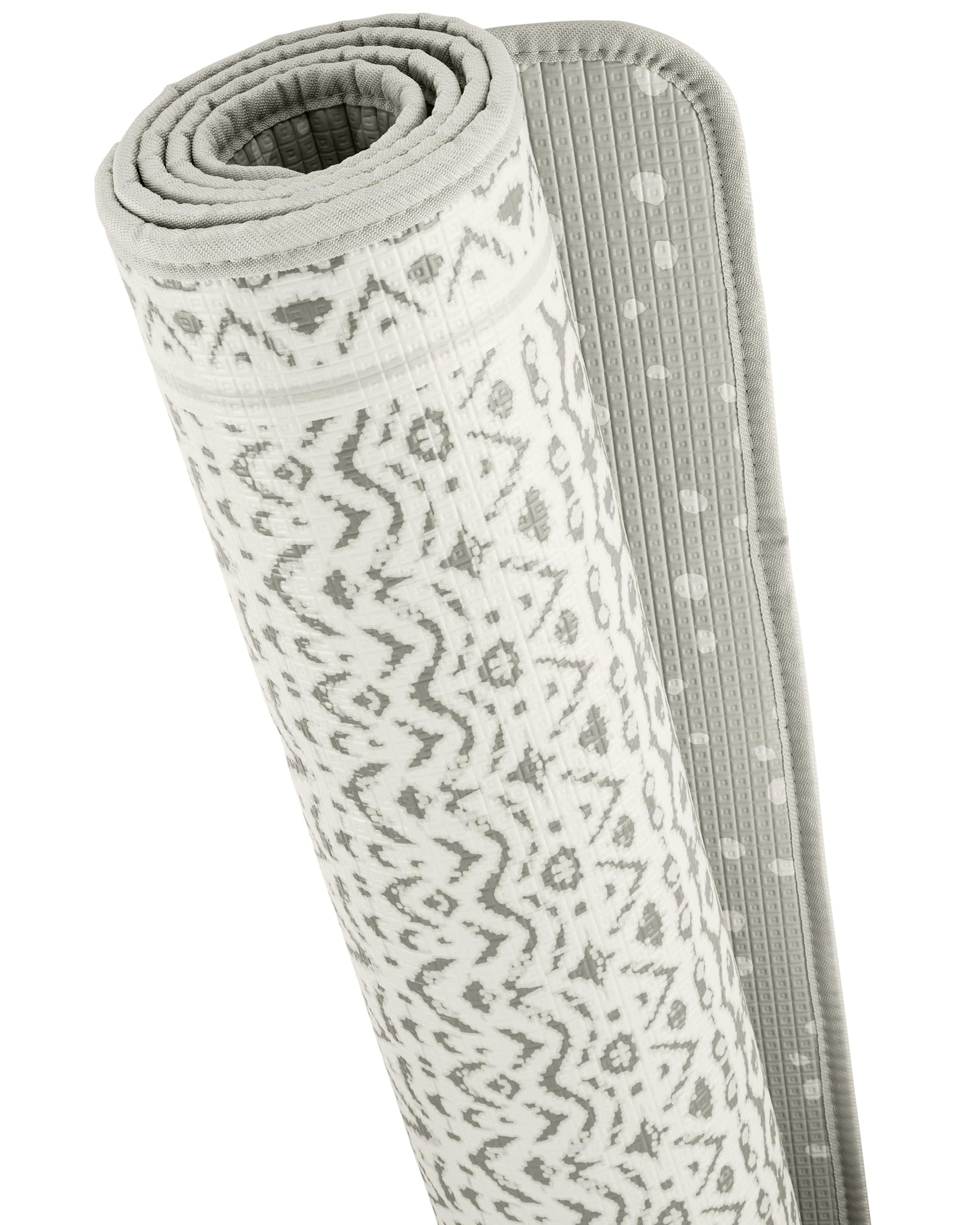 Designed to double the choices for stylish, baby-friendly floor covering, our neutral reversible playmat flips from an ikat-inspired pattern to a mini dot print for two decor-friendly looks in one. Completely PVC-free, the easy-care foam mat provides a jumbo-size cushioned play space that works equally well in the living room or playroom. Simply roll it up for convenient transport and storage.
