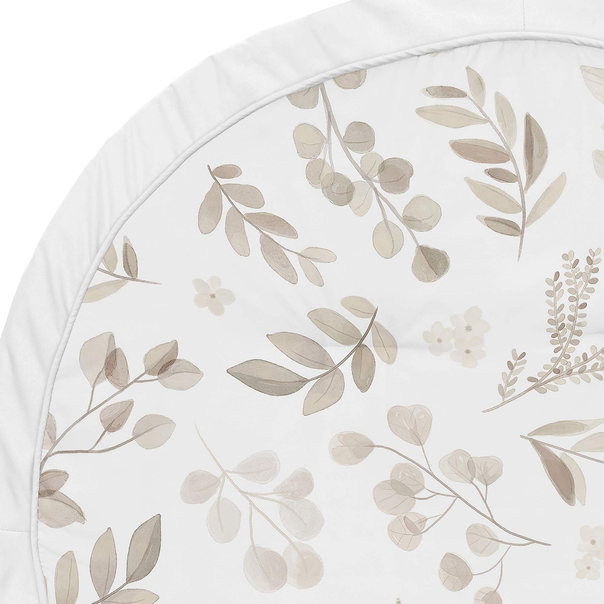 - Q: What is the design of the playmat? A: The playmat features a beautiful botanical floral leaf print finished with white piping and border, creating an inviting play space.