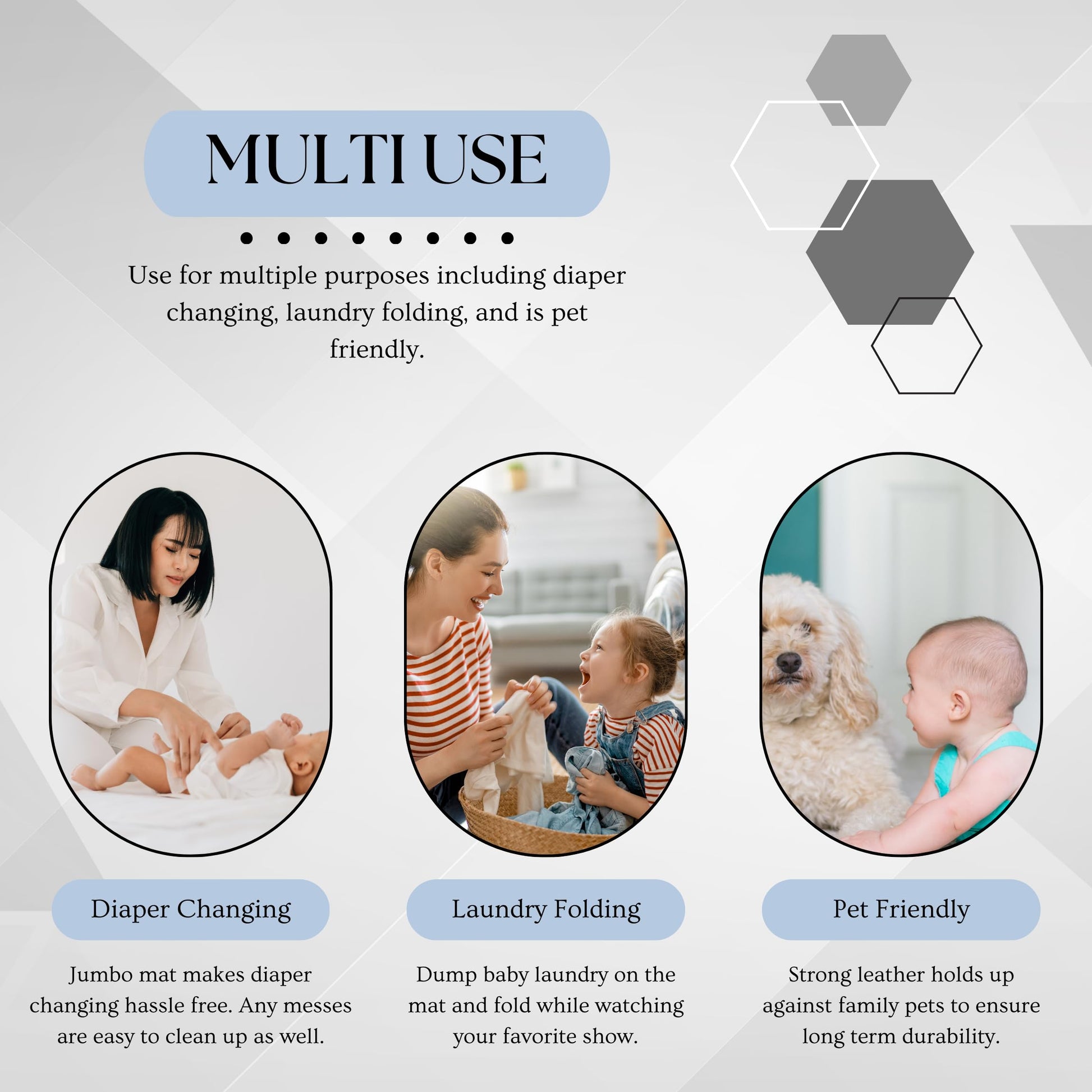 - Q: What additional uses does the mat have? A: In addition to playtime, the mat can assist with diaper changing or other household tasks, making it a versatile addition to your home.