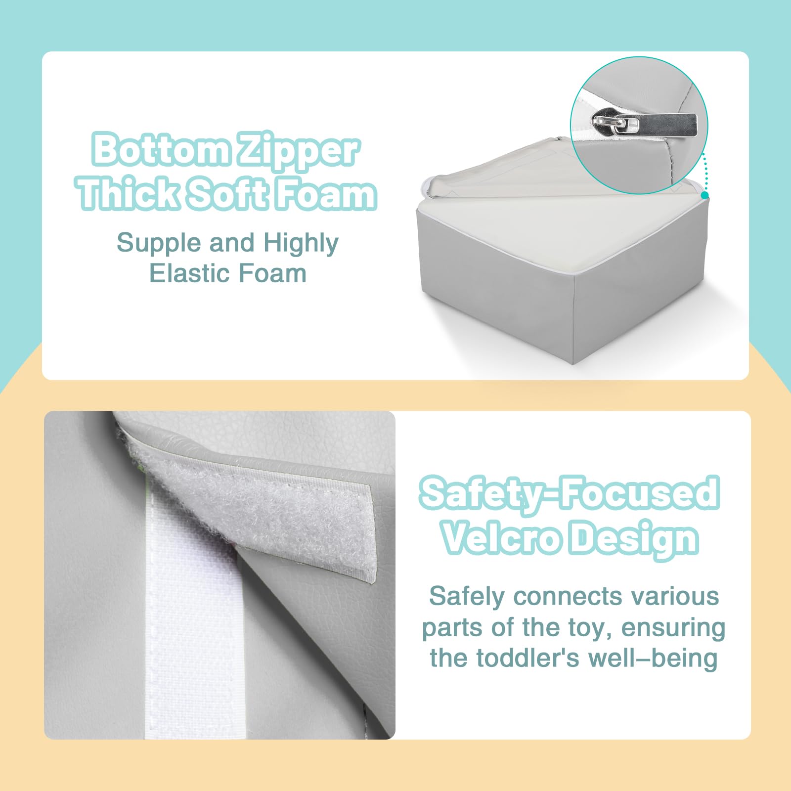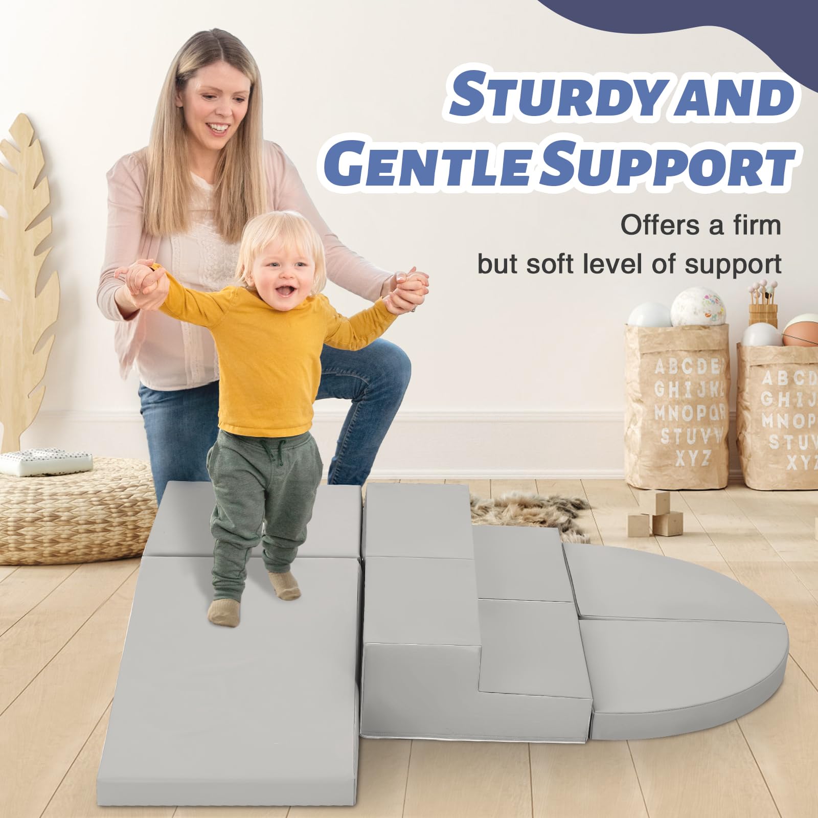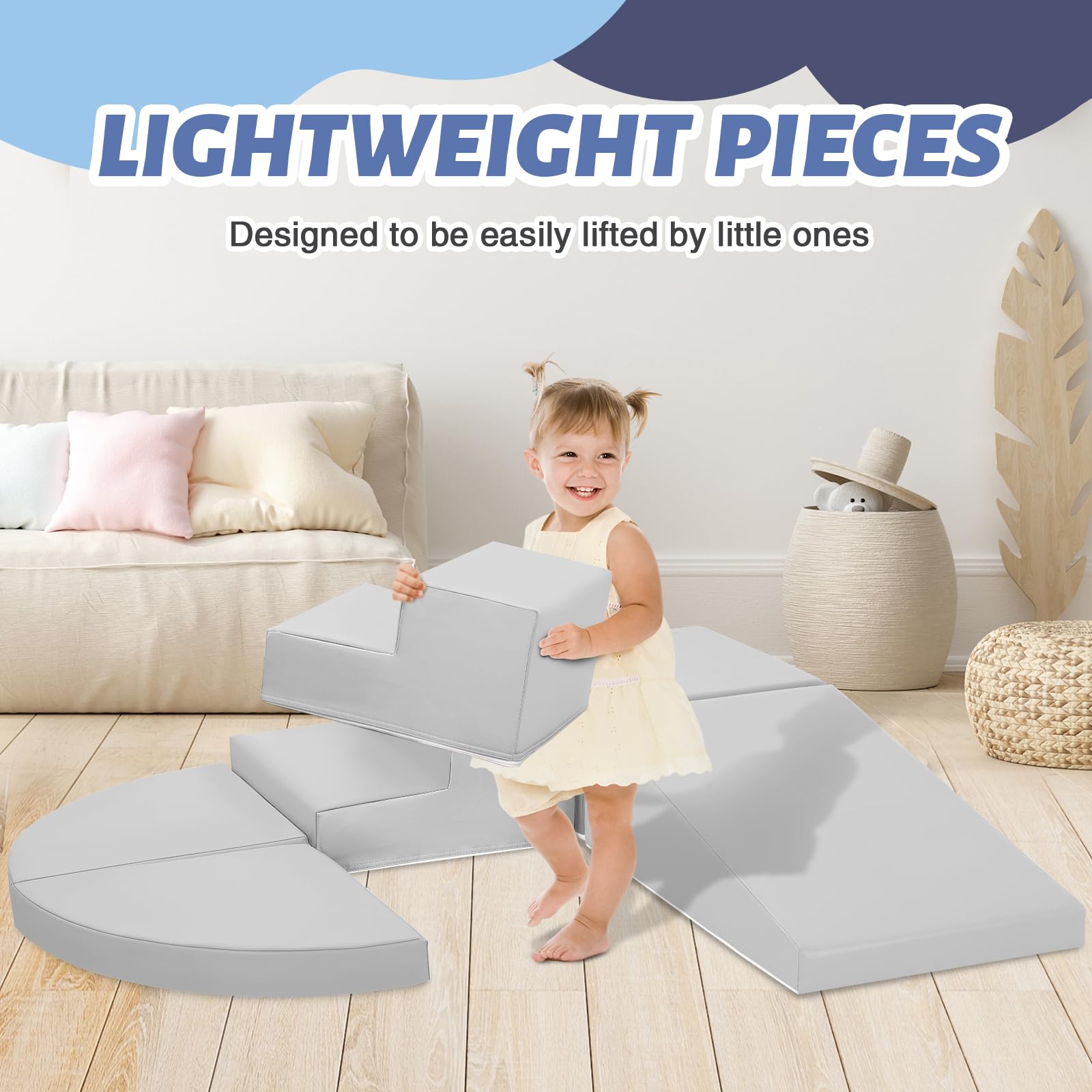 TODIBY 6-Piece Set Baby Climbing Toys for Toddlers: 2 grey stairs 2 grey half-moon 1 grey square 1 grey slide