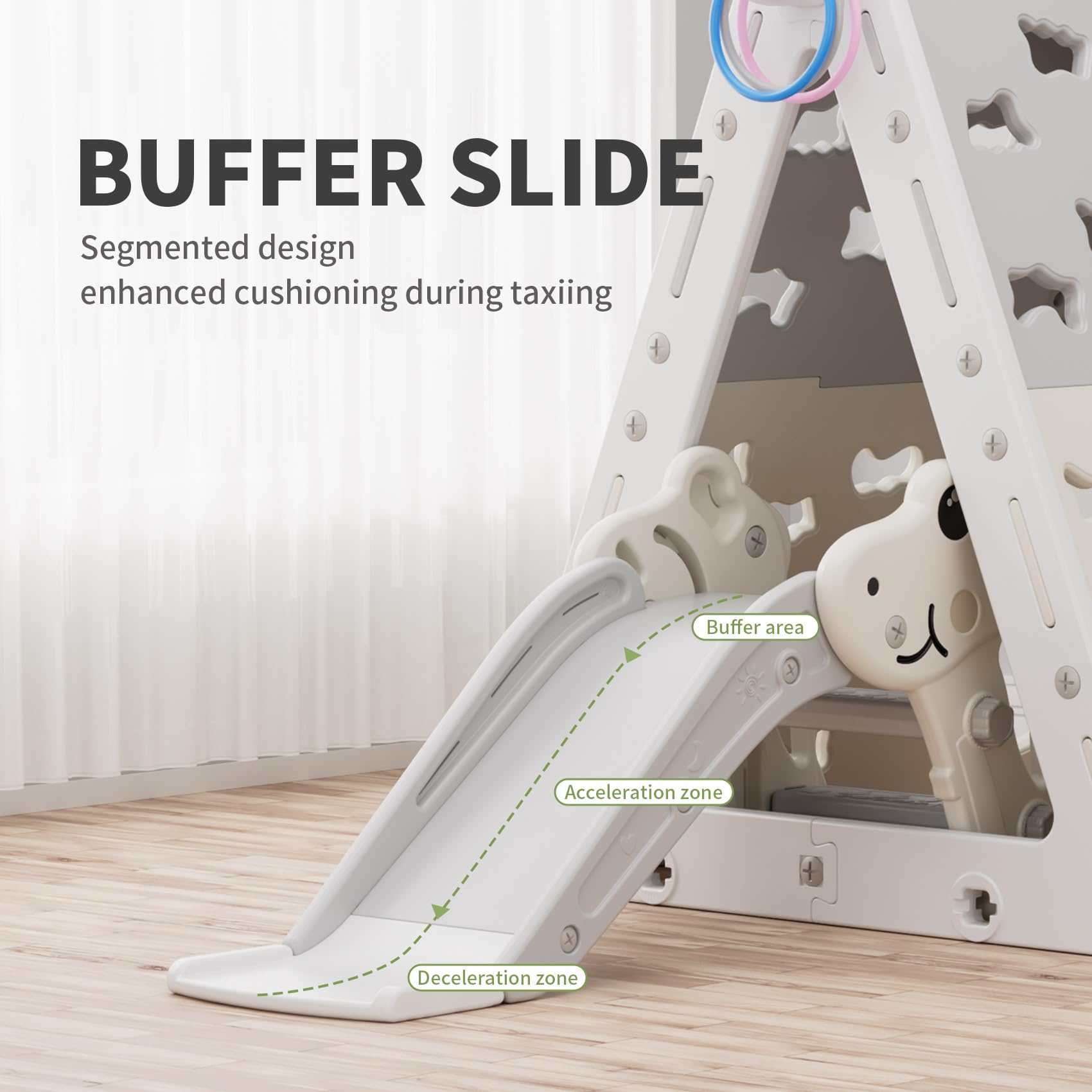 • Q: Does the climbing set promote physical development? A: Yes, the multifunctional design of the climbing set encourages physical development through various play activities, such as climbing, sliding, and crawling.