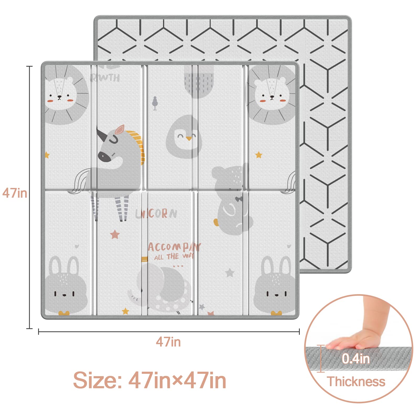 Zeebaba Baby Play Mat, 47'X47' Foldable & Reversable Play Mat, 0.4' Thick Waterproof Foam Play Mat, Unicorn Baby Mat, Foam Pl