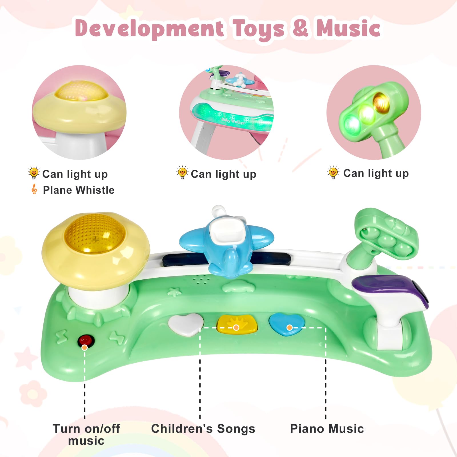 - Q: Does the baby walker come with any toys or music features? A: Yes, the baby walker includes music and toys that help stimulate your baby's senses and promote early development.