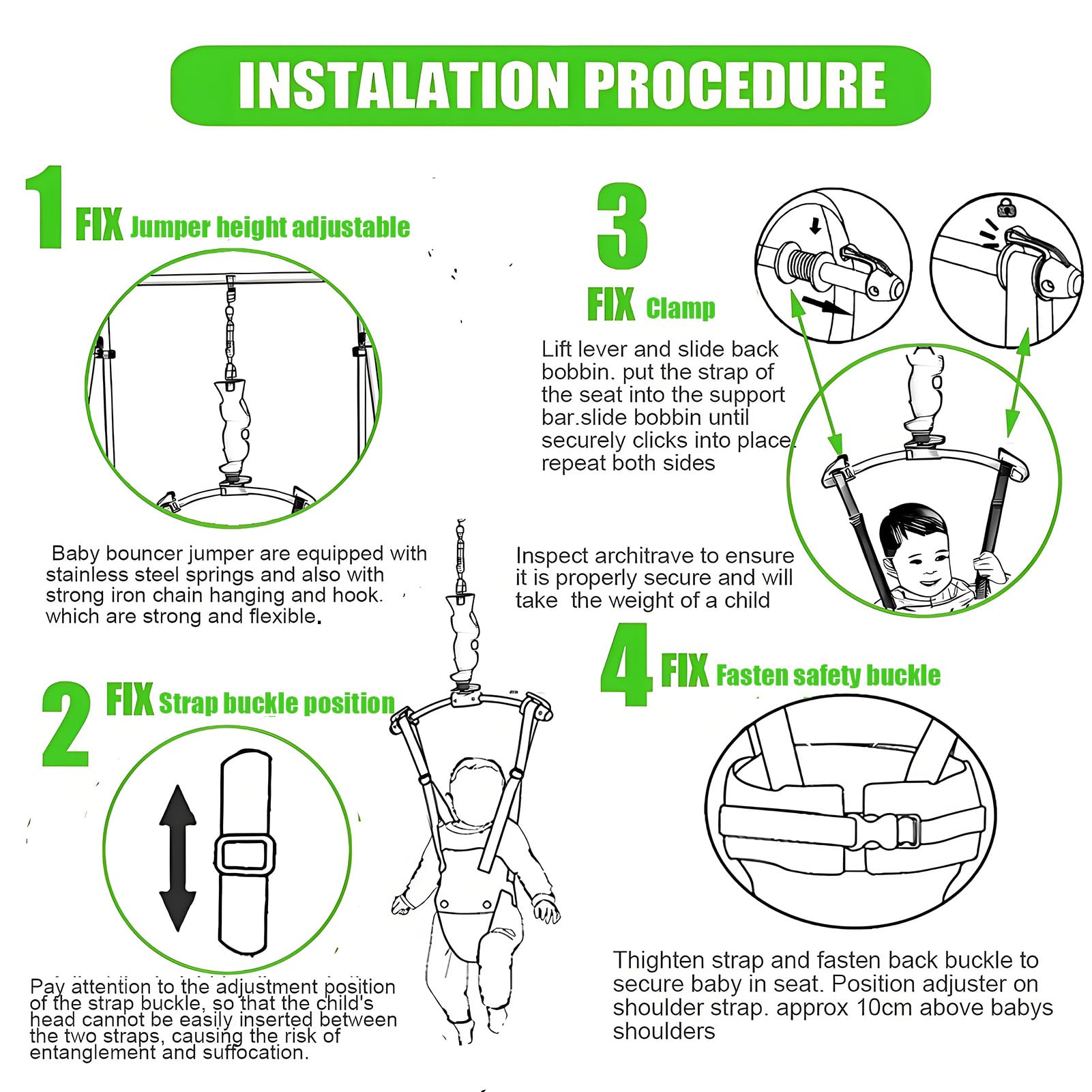 - Q: What age group is the Baby Door Jumper suitable for? A: The Baby Door Jumper is designed for infants aged 6 to 24 months.