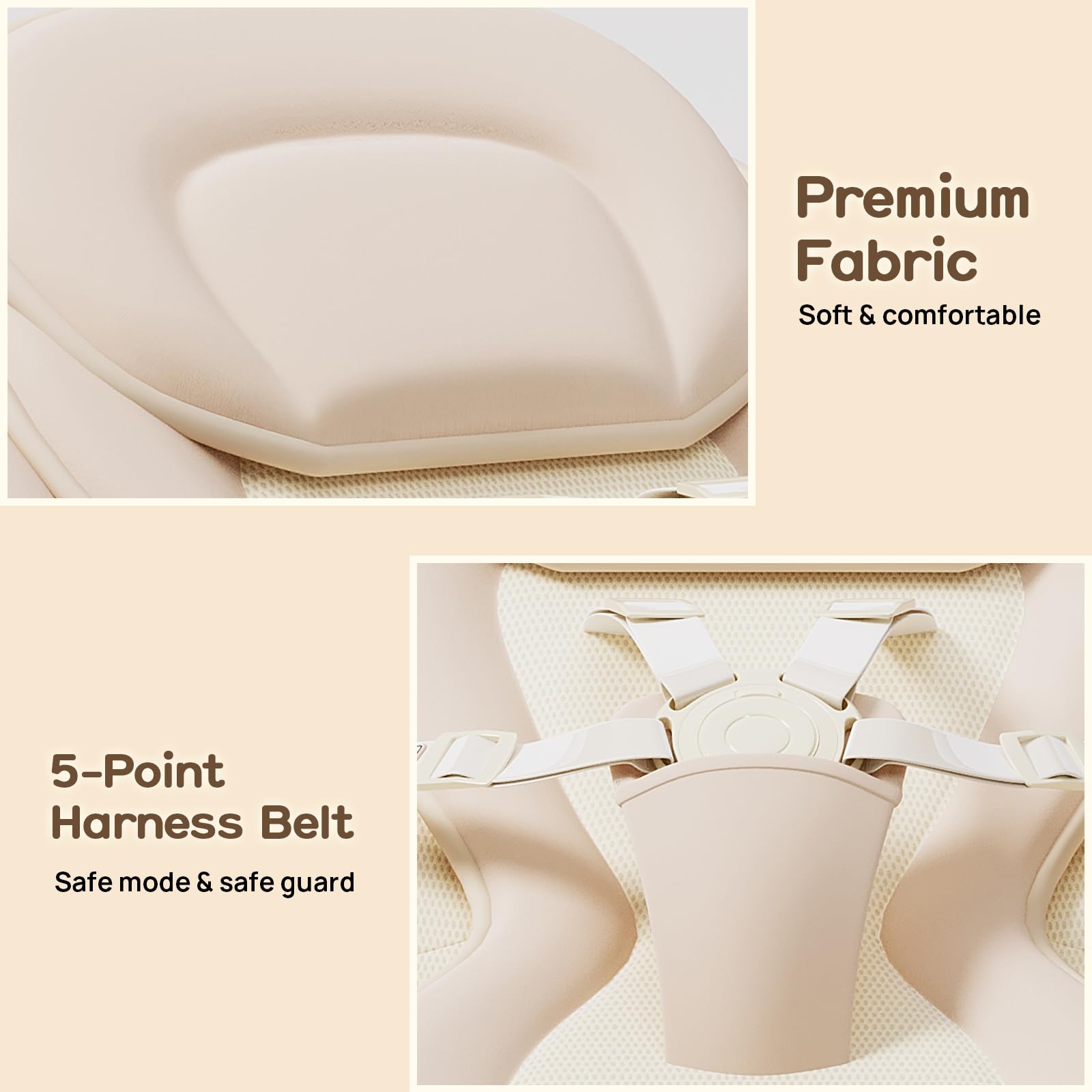 - Q: What safety features does the Baby Swing have? A: The Baby Swing features a 5-point safety harness that securely holds the baby in place, preventing any risk of falling during use.