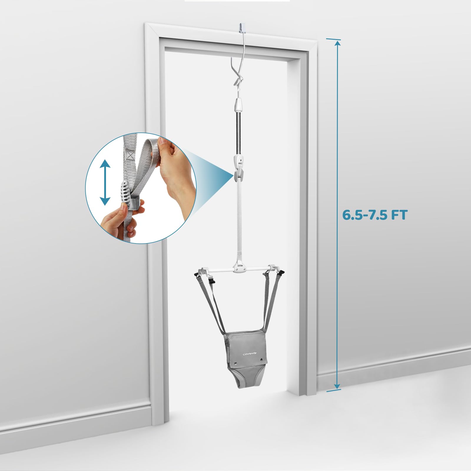 - Q: What are the weight and height limits for the Cowiewie Baby Door Jumper? A: The Cowiewie Baby Door Jumper is designed for babies from approximately 6 months of age up to a maximum weight of 35.2 pounds or 16 kilograms. It is suitable for door frames between 80 inches to 87 inches high.