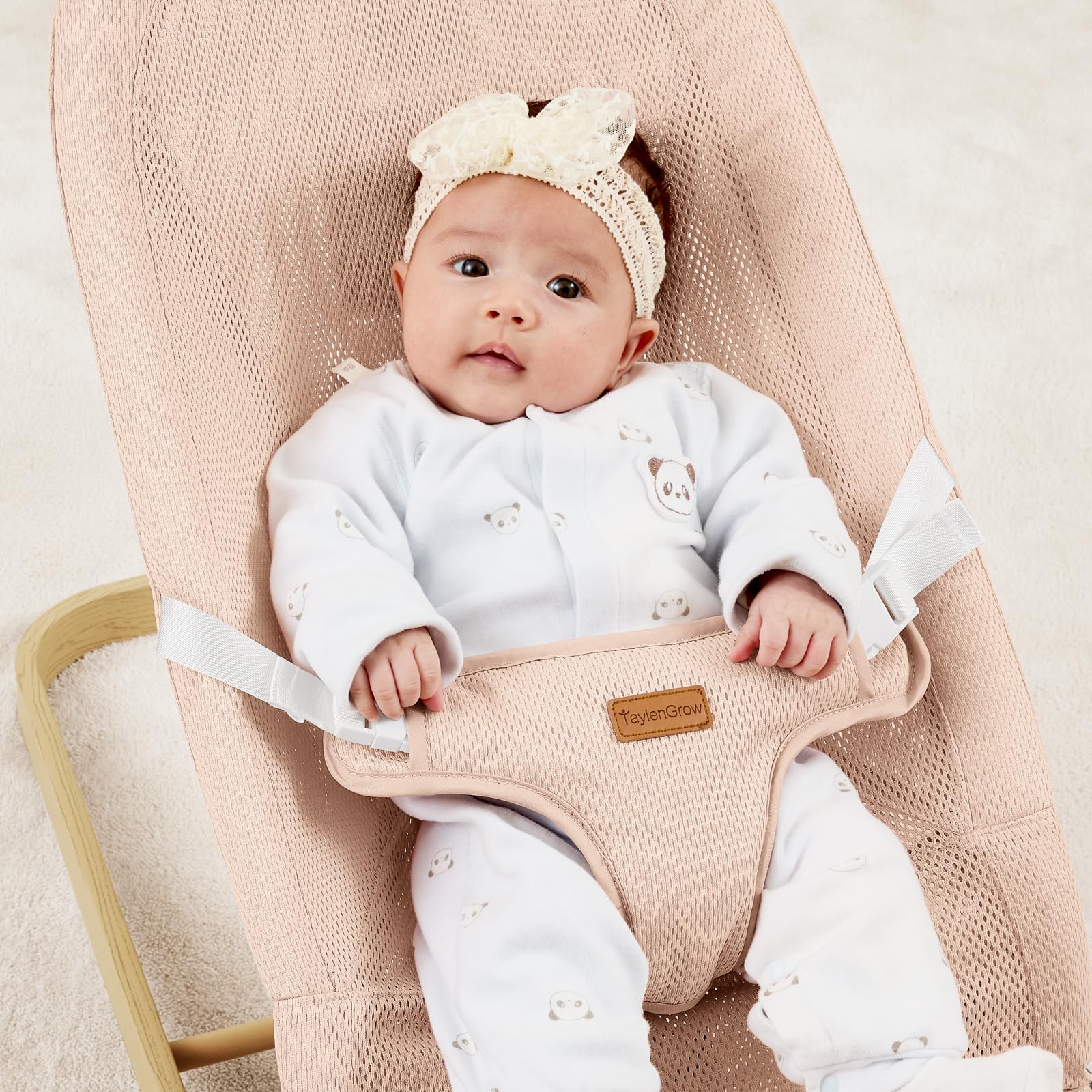 - Q: What safety features does the bouncer have? A: The baby bouncer includes a 3-point harness, an ASTM certified frame, and a non-slip base that grips various floor surfaces.