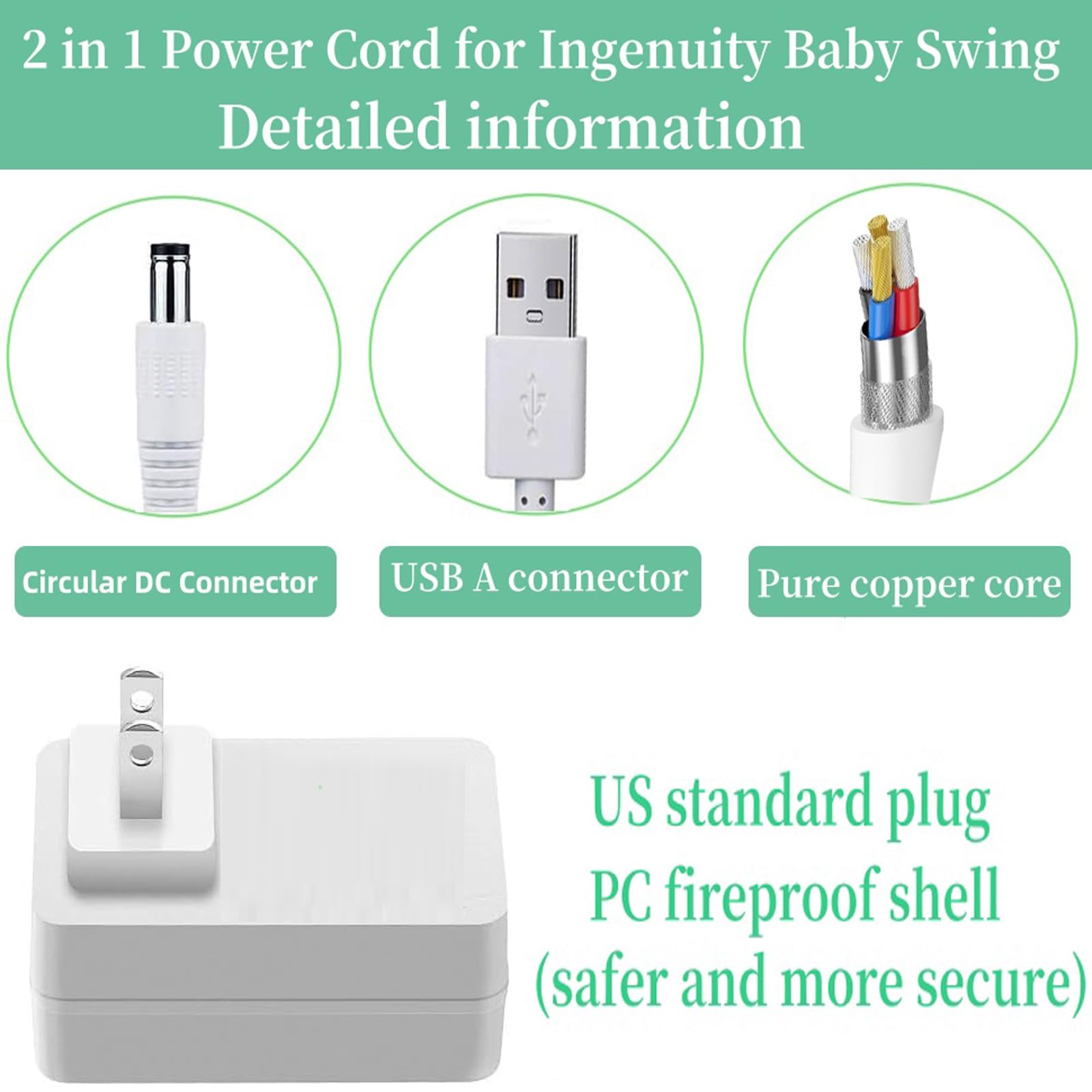 - Q: Can I use this adapter with other devices outside of Ingenuity baby swings? A: This adapter is specifically designed for use with Ingenuity baby swings that require an output of 5 to 6 volts. Please check compatibility with your device before use.