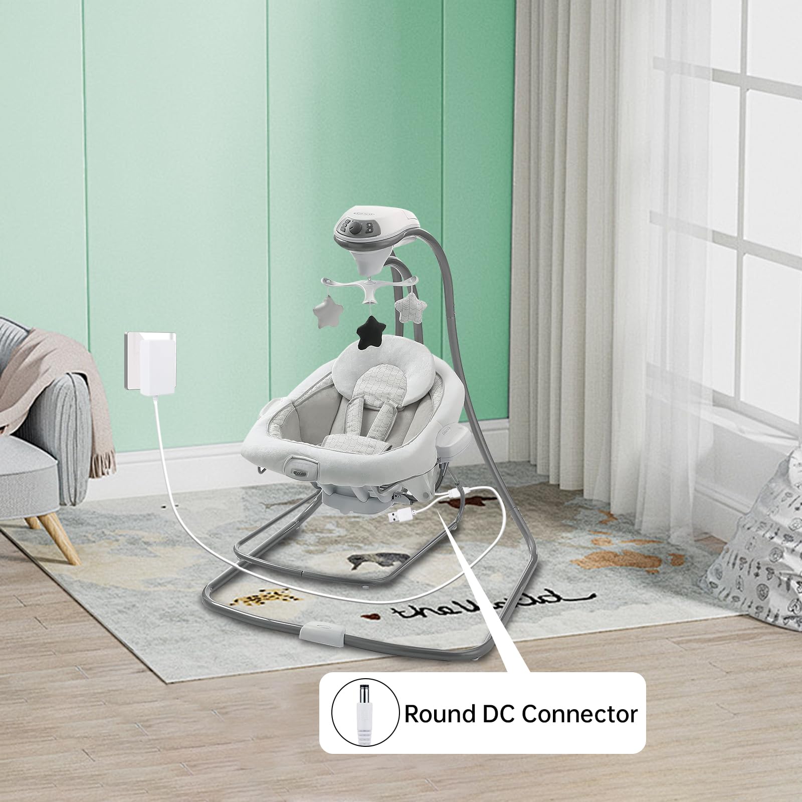 - Q: Is this power adapter safe for use with baby swings? A: Yes, this power adapter features a high safety factor, including voltage protection, current protection, overload protection, and temperature protection to ensure safe operation.