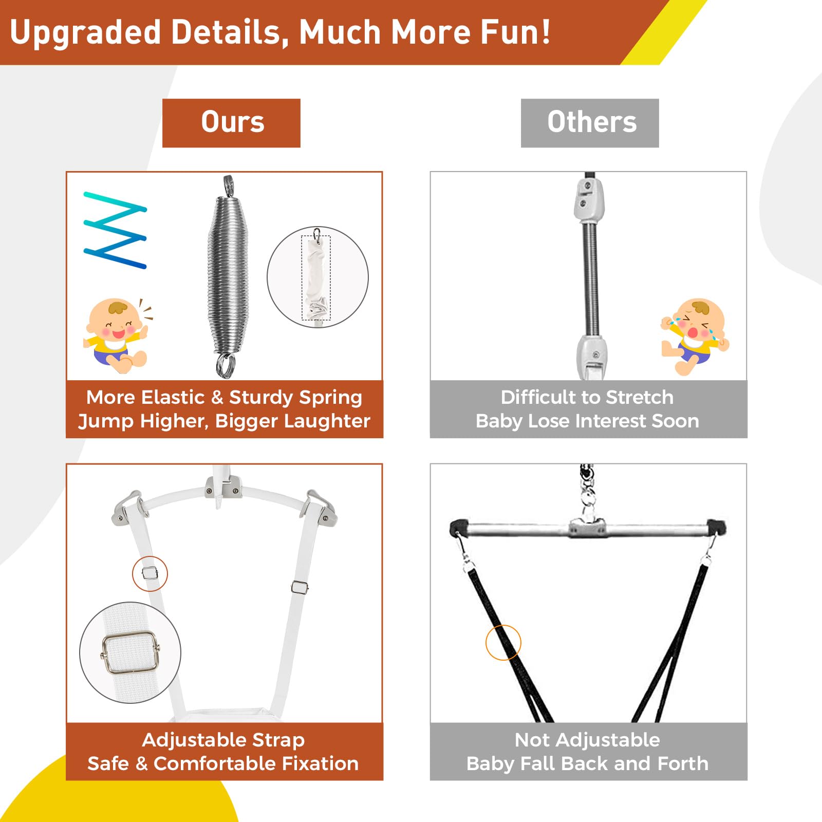 - Q: What is included in the package? A: The package includes one baby jumper and one sturdy door clamp.